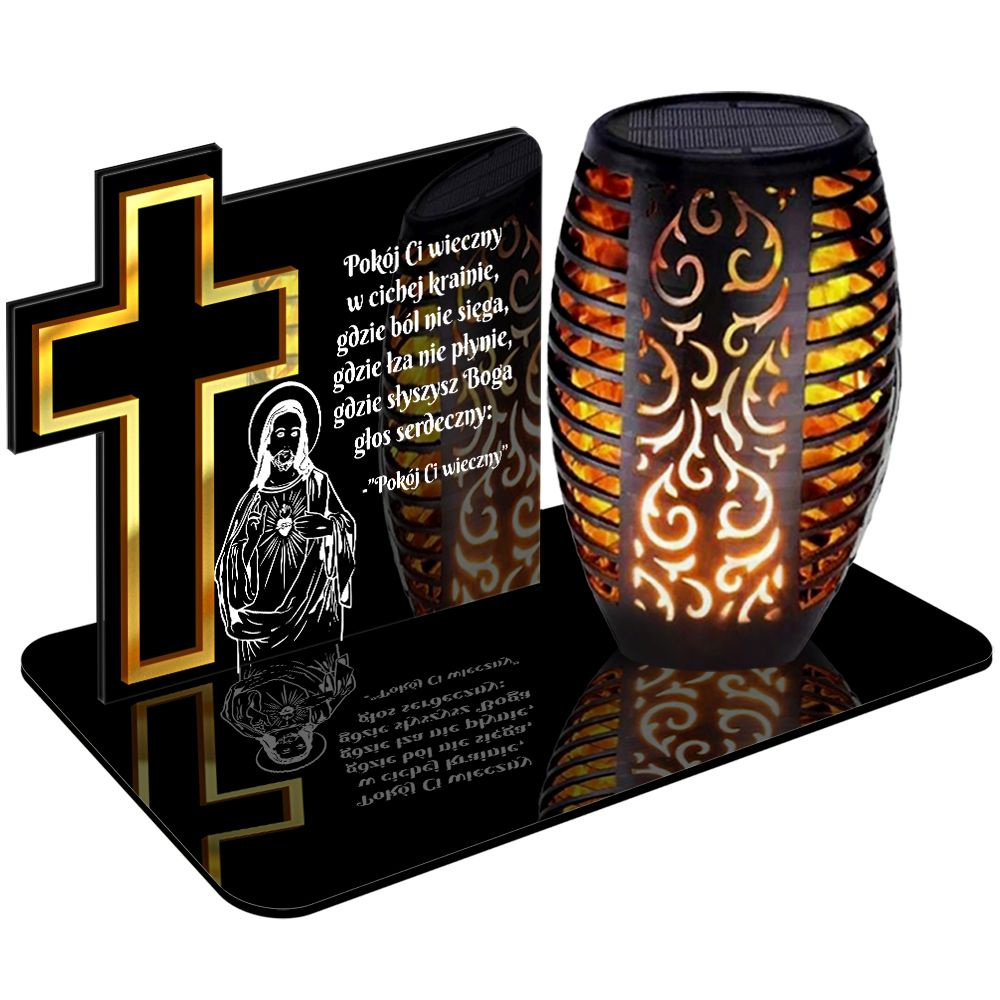 ZNICZ SOLARNY LED WIECZNY PODSTAWKA NA CMENTARZ GRÓB Krzyż EFEKT PŁOMIENIA