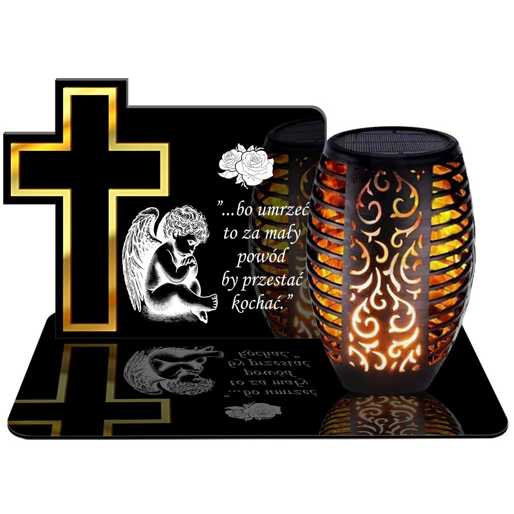 ZNICZ SOLARNY LED WIECZNY PODSTAWKA NA CMENTARZ GRÓB Krzyż EFEKT PŁOMIENIA