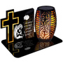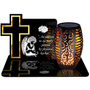 ZNICZ SOLARNY LED PREMIUM XL z złotym zdobieniem - wieczny znicz z wbudowanym czujnikiem zmierzchu i WKŁADEM Z EFEKTEM PŁOMIENIA