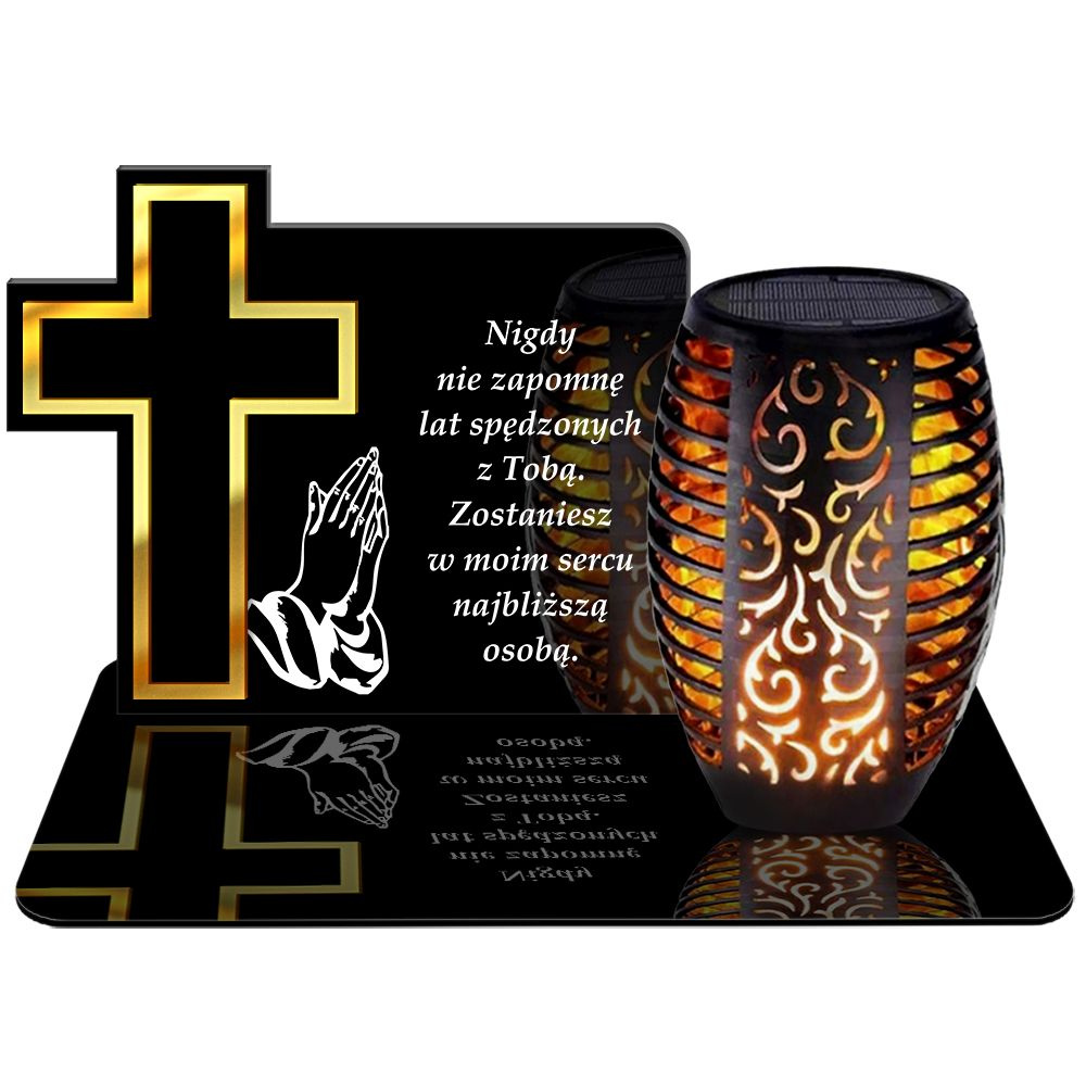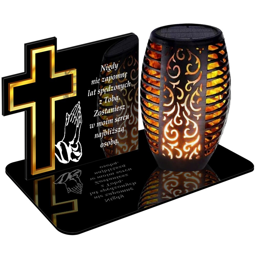 ZNICZ SOLARNY LED WIECZNY PODSTAWKA NA CMENTARZ GRÓB Krzyż EFEKT PŁOMIENIA