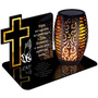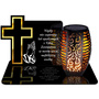 ZNICZ SOLARNY LED PREMIUM XL z złotym zdobieniem - wieczny znicz z wbudowanym czujnikiem zmierzchu i WKŁADEM Z EFEKTEM PŁOMIENIA