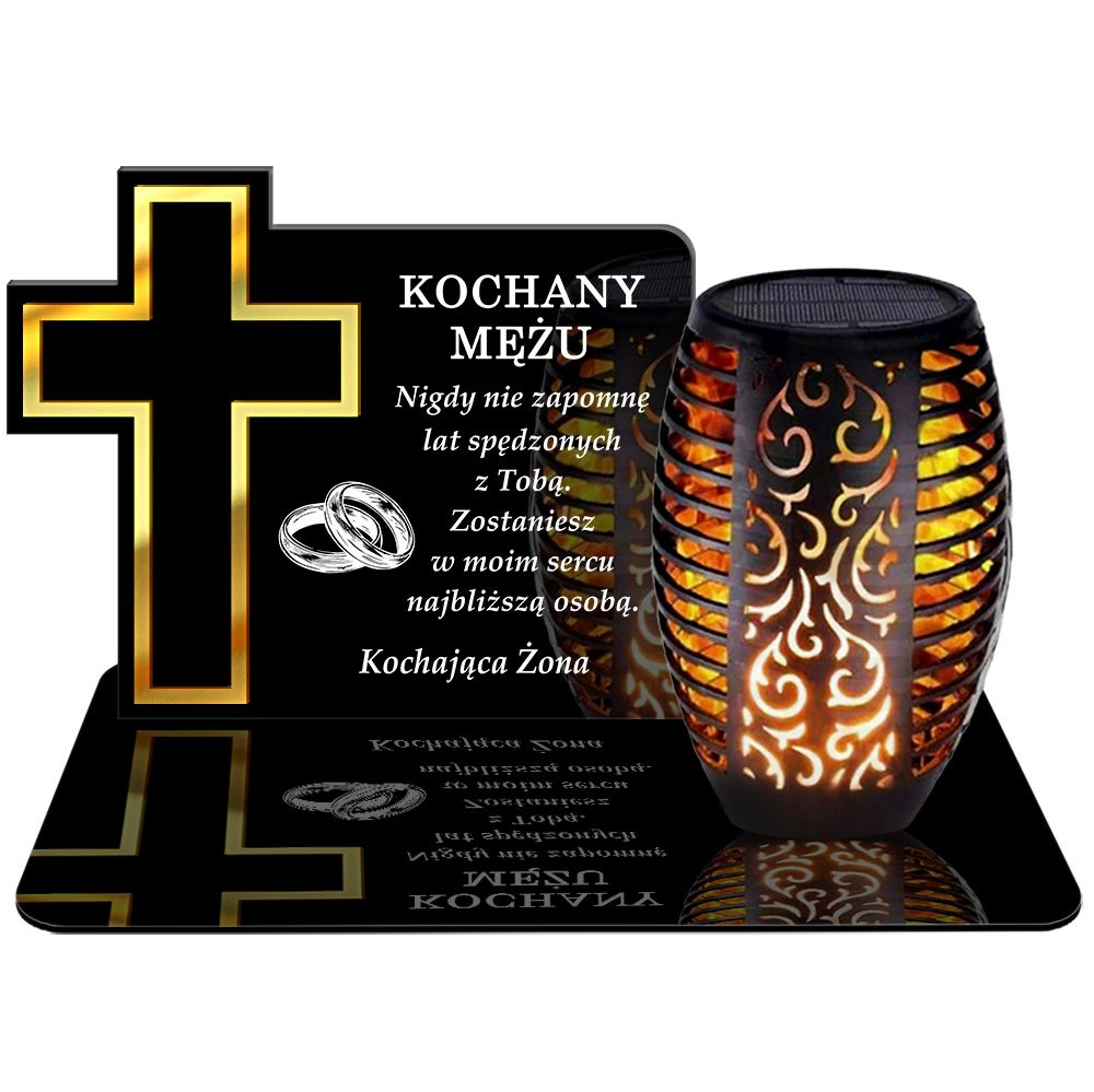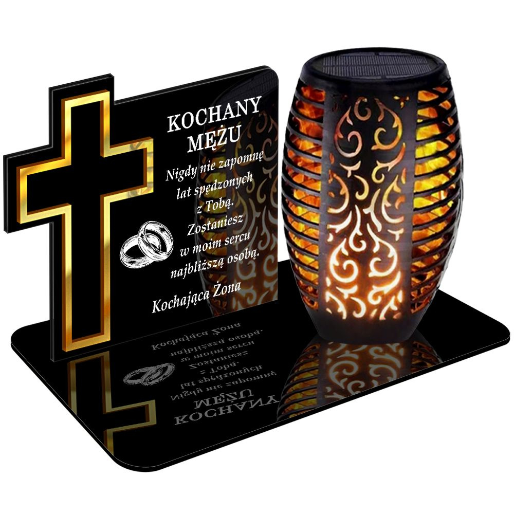 ZNICZ SOLARNY LED WIECZNY PODSTAWKA NA CMENTARZ GRÓB Krzyż EFEKT PŁOMIENIA DLA MĘŻA