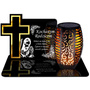 ZNICZ SOLARNY LED PREMIUM XL z złotym zdobieniem - wieczny znicz z wbudowanym czujnikiem zmierzchu i WKŁADEM Z EFEKTEM PŁOMIENIA