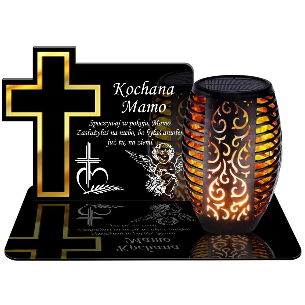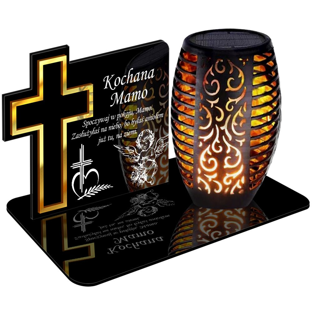 ZNICZ SOLARNY LED WIECZNY PODSTAWKA NA CMENTARZ GRÓB Krzyż EFEKT PŁOMIENIA DLA MAMY