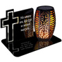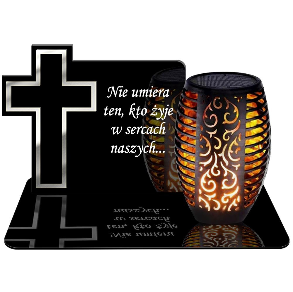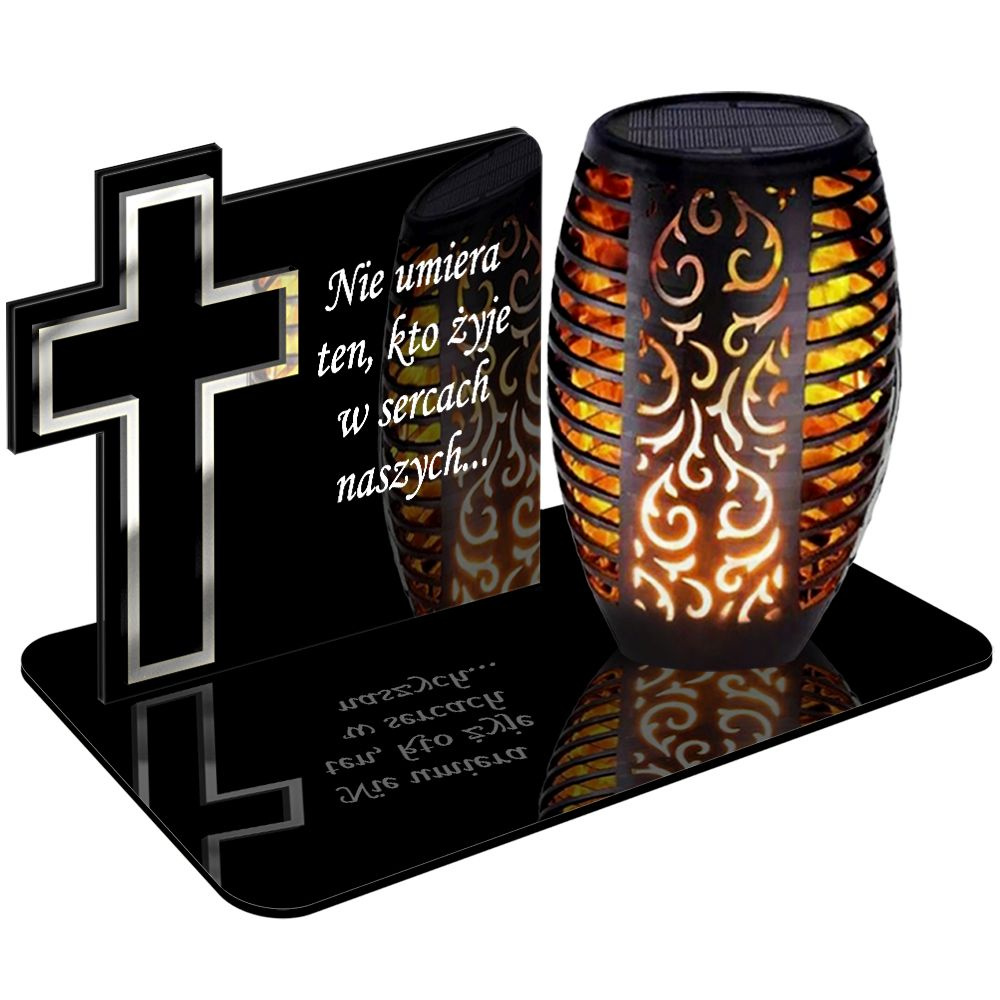 ZNICZ SOLARNY LED WIECZNY PODSTAWKA NA CMENTARZ GRÓB Krzyż EFEKT PŁOMIENIA