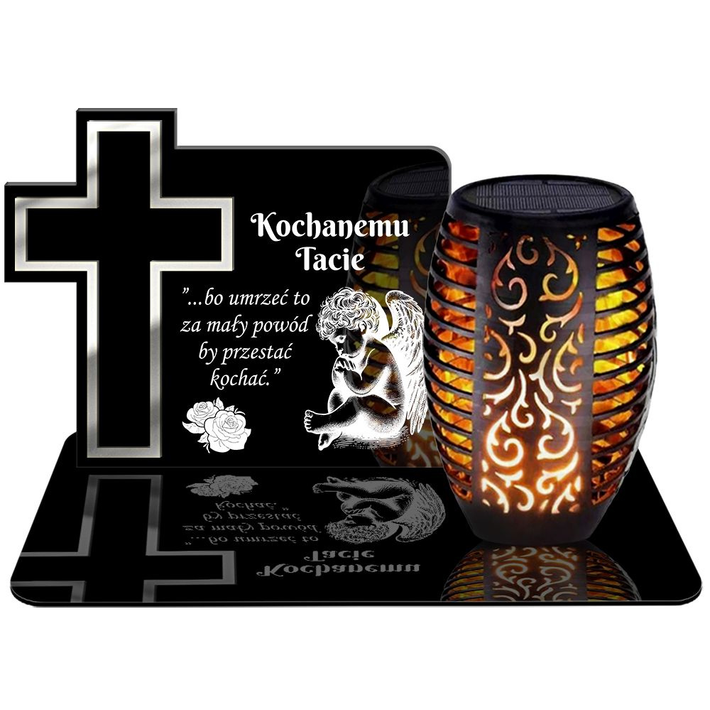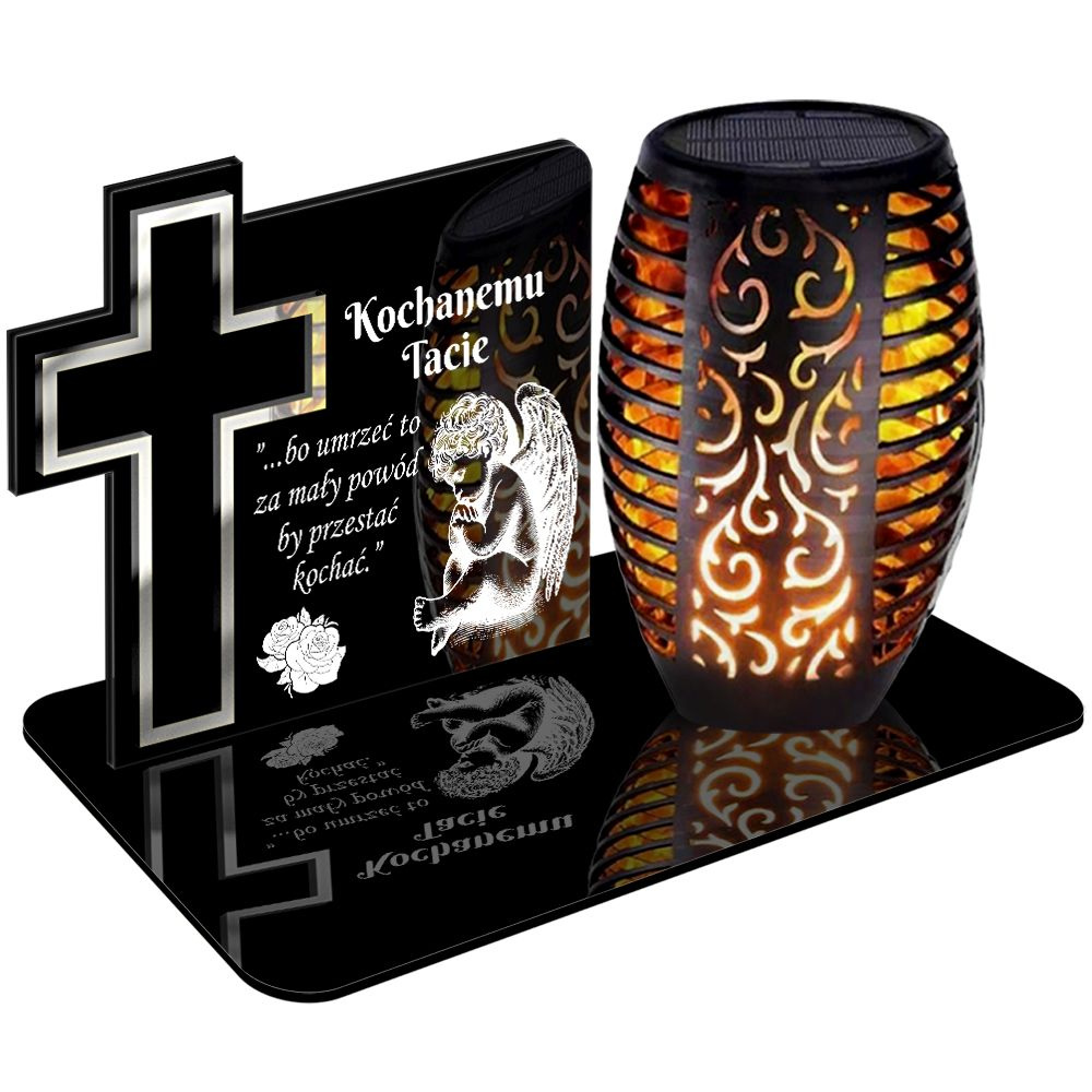 ZNICZ SOLARNY LED WIECZNY PODSTAWKA NA CMENTARZ GRÓB Krzyż EFEKT PŁOMIENIA DLA TATY