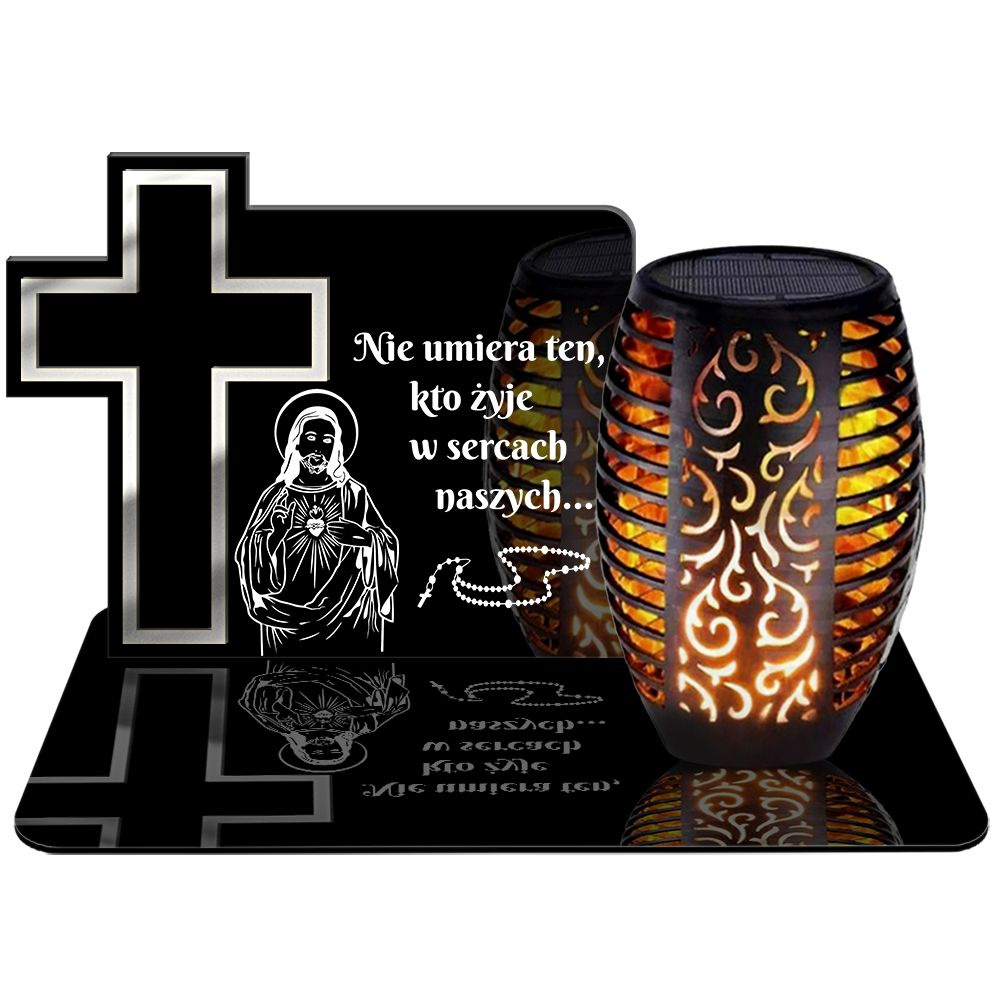ZNICZ SOLARNY LED WIECZNY PODSTAWKA NA CMENTARZ GRÓB Krzyż EFEKT PŁOMIENIA