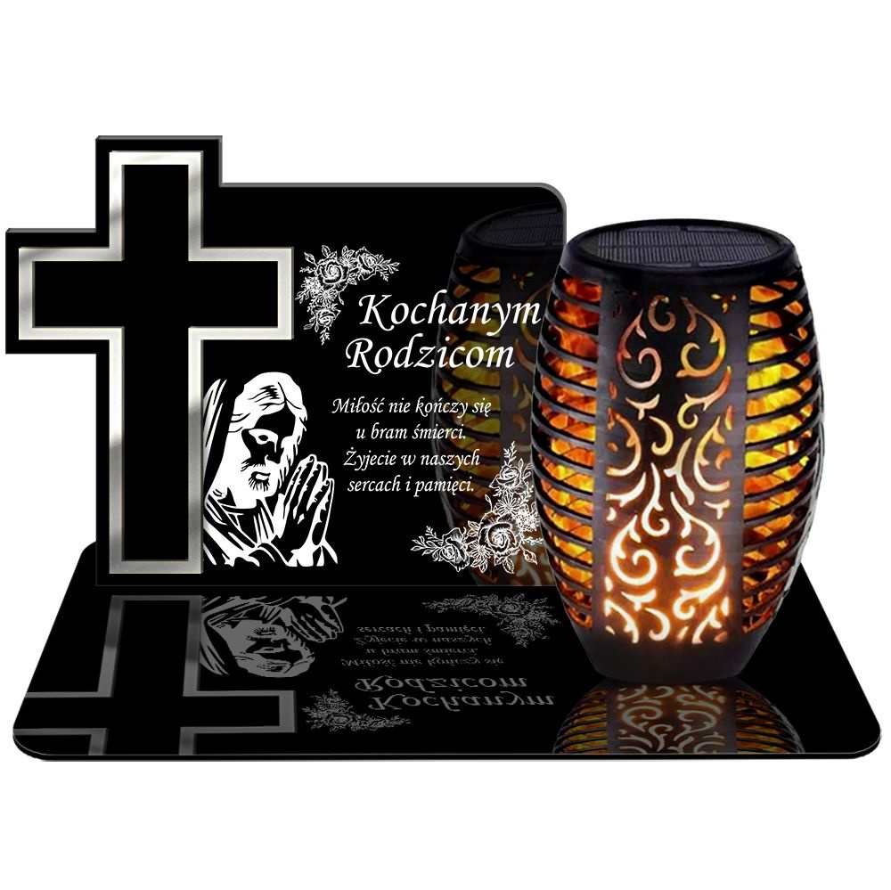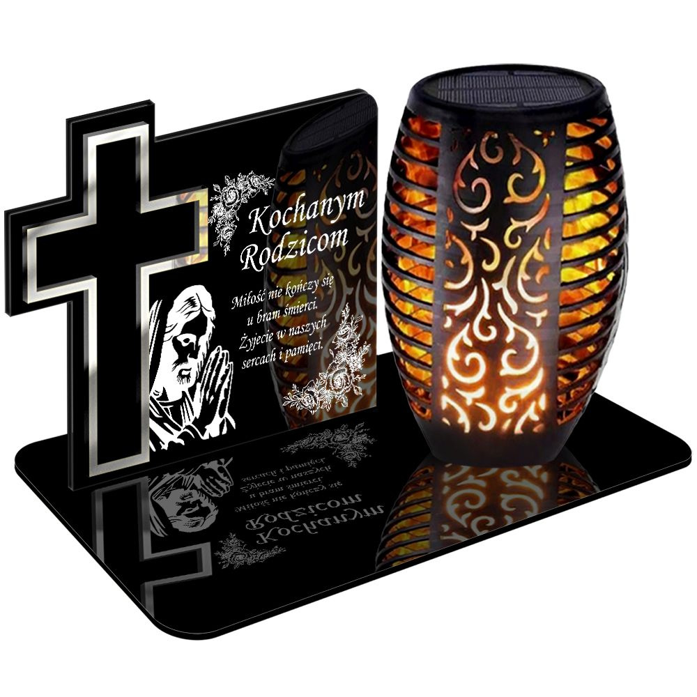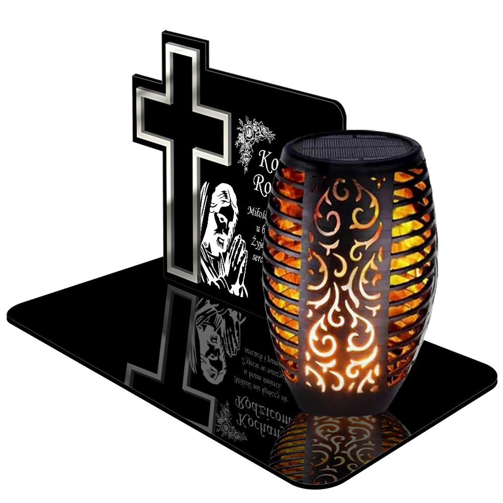 ZNICZ SOLARNY LED WIECZNY PODSTAWKA NA CMENTARZ GRÓB Krzyż EFEKT PŁOMIENIA DLA RODZICÓW