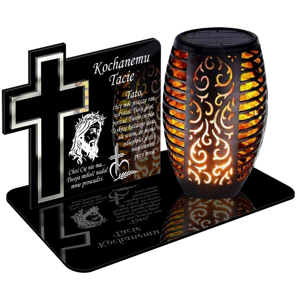 ZNICZ SOLARNY LED WIECZNY PODSTAWKA NA CMENTARZ GRÓB Krzyż EFEKT PŁOMIENIA DLA TATY