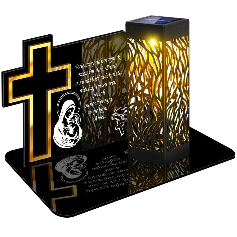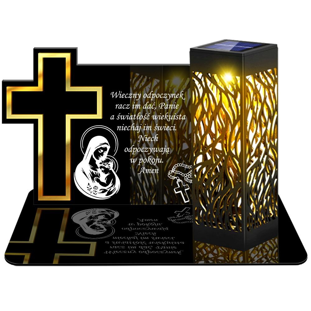 • ZNICZ SOLARNY LED WIECZNY PODSTAWKA NA CMENTARZ GRÓB lampka Krzyż 3D