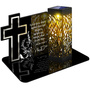 • ZNICZ SOLARNY LED WIECZNY PODSTAWKA NA CMENTARZ GRÓB lampka Krzyż 3D