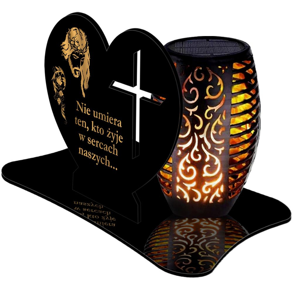 ZNICZ SOLARNY LED WIECZNY PODSTAWKA NA CMENTARZ GRÓB Krzyż EFEKT PŁOMIENIA