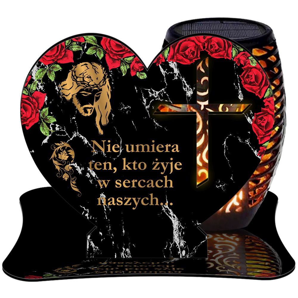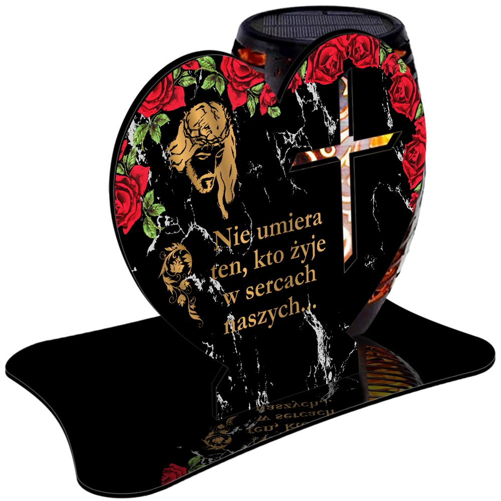 ZNICZ SOLARNY LED WIECZNY PODSTAWKA NA CMENTARZ GRÓB Krzyż EFEKT PŁOMIENIA