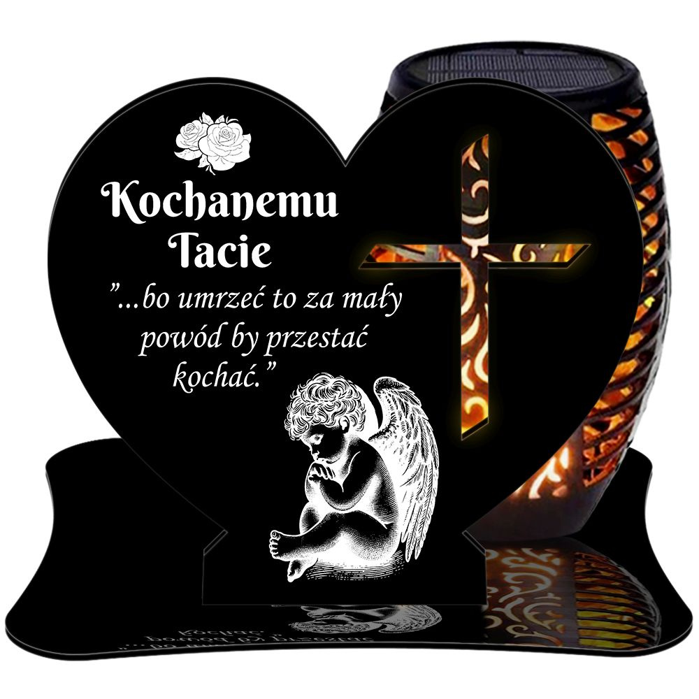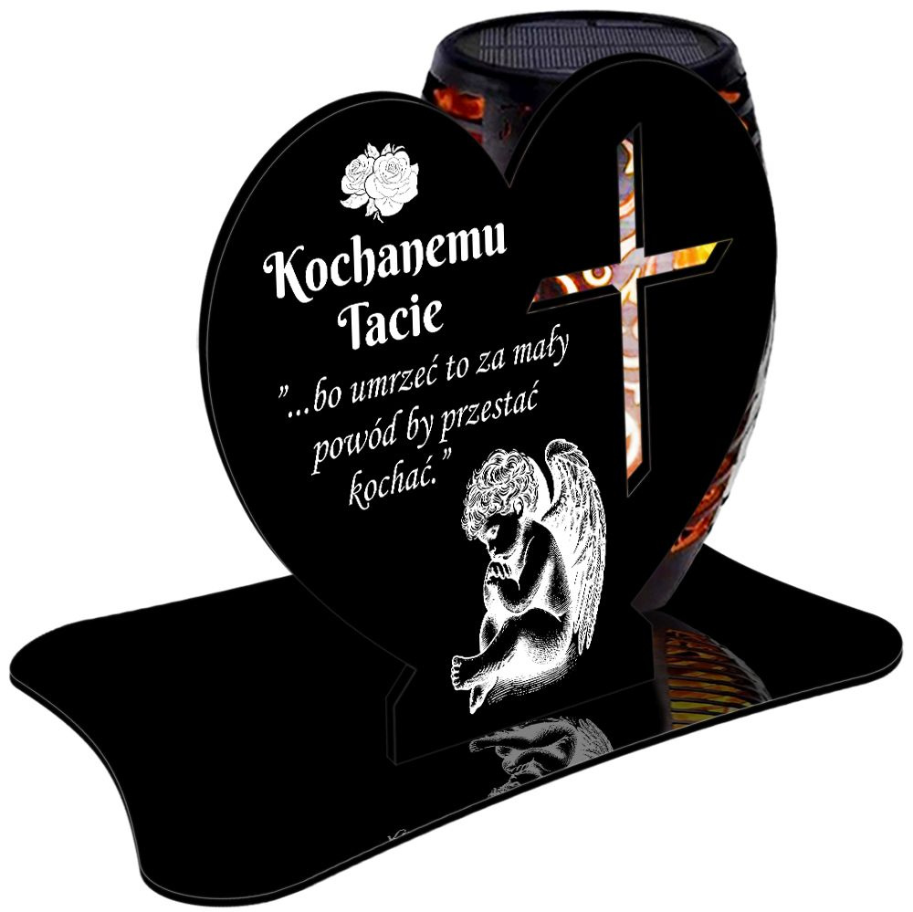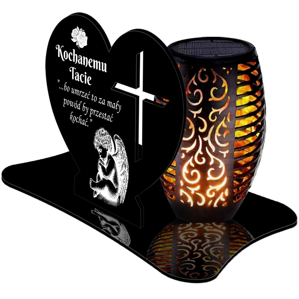 ZNICZ SOLARNY LED WIECZNY PODSTAWKA NA CMENTARZ GRÓB Krzyż EFEKT PŁOMIENIA DLA TATY