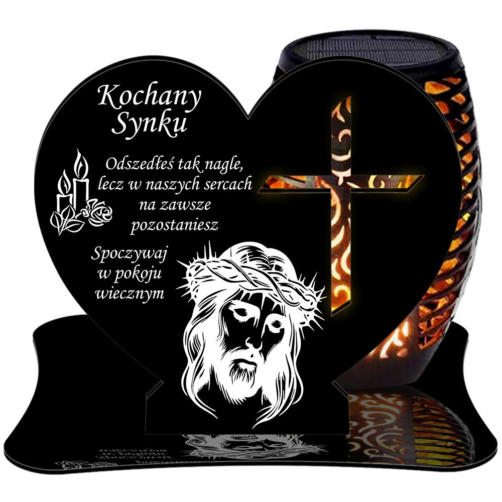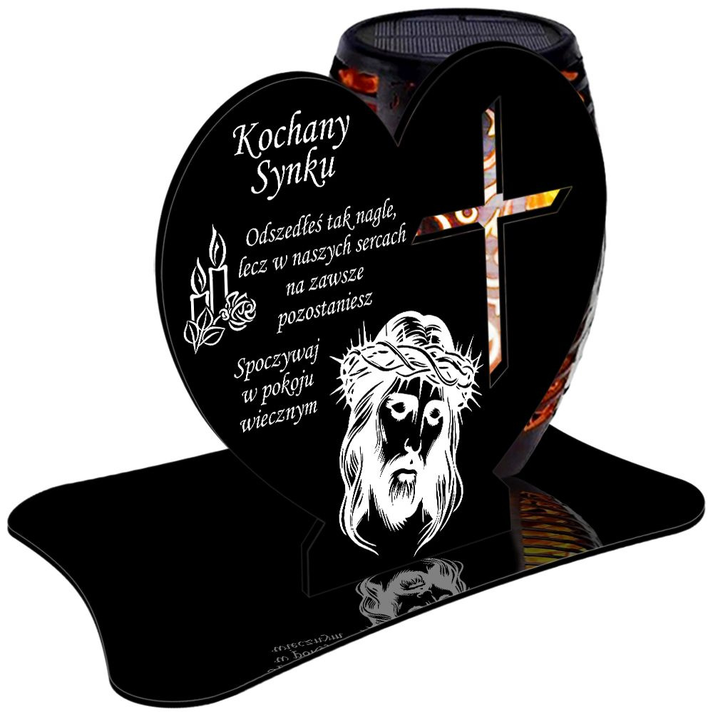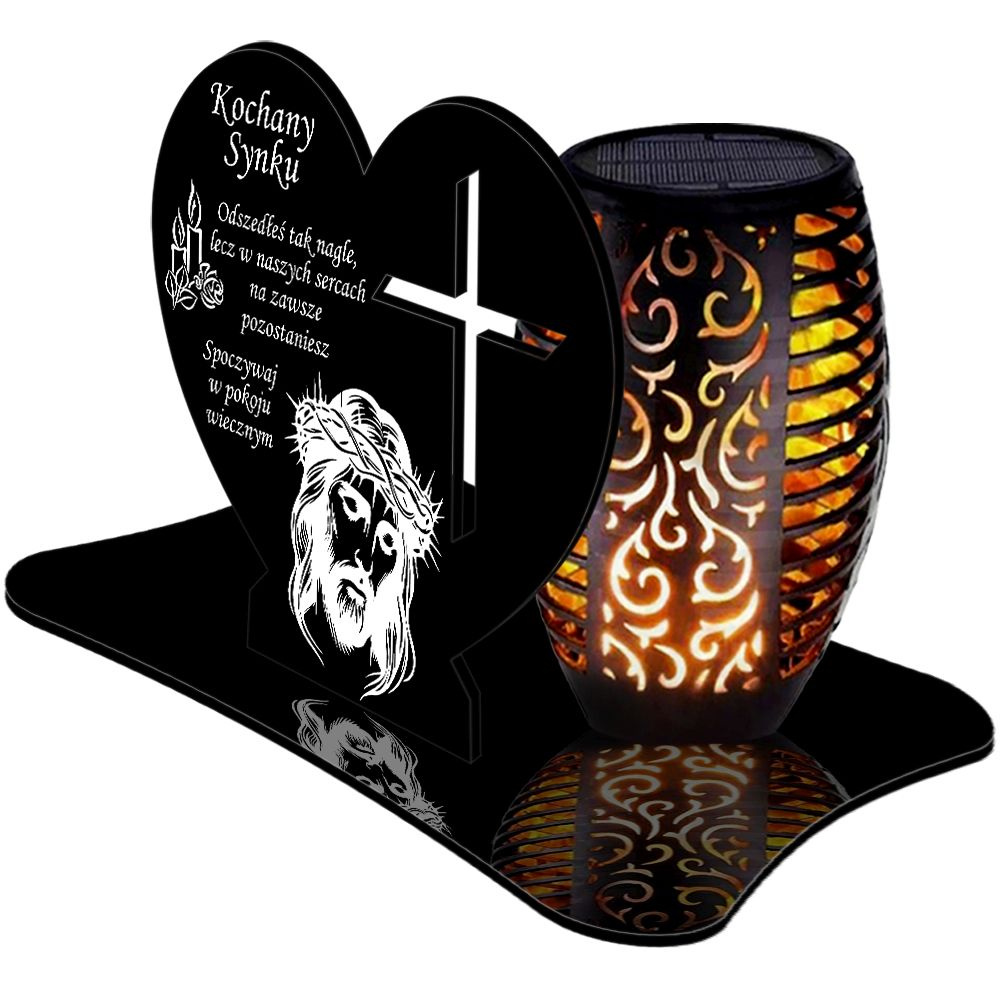 ZNICZ SOLARNY LED WIECZNY PODSTAWKA NA CMENTARZ GRÓB Krzyż EFEKT PŁOMIENIA DLA SYNA