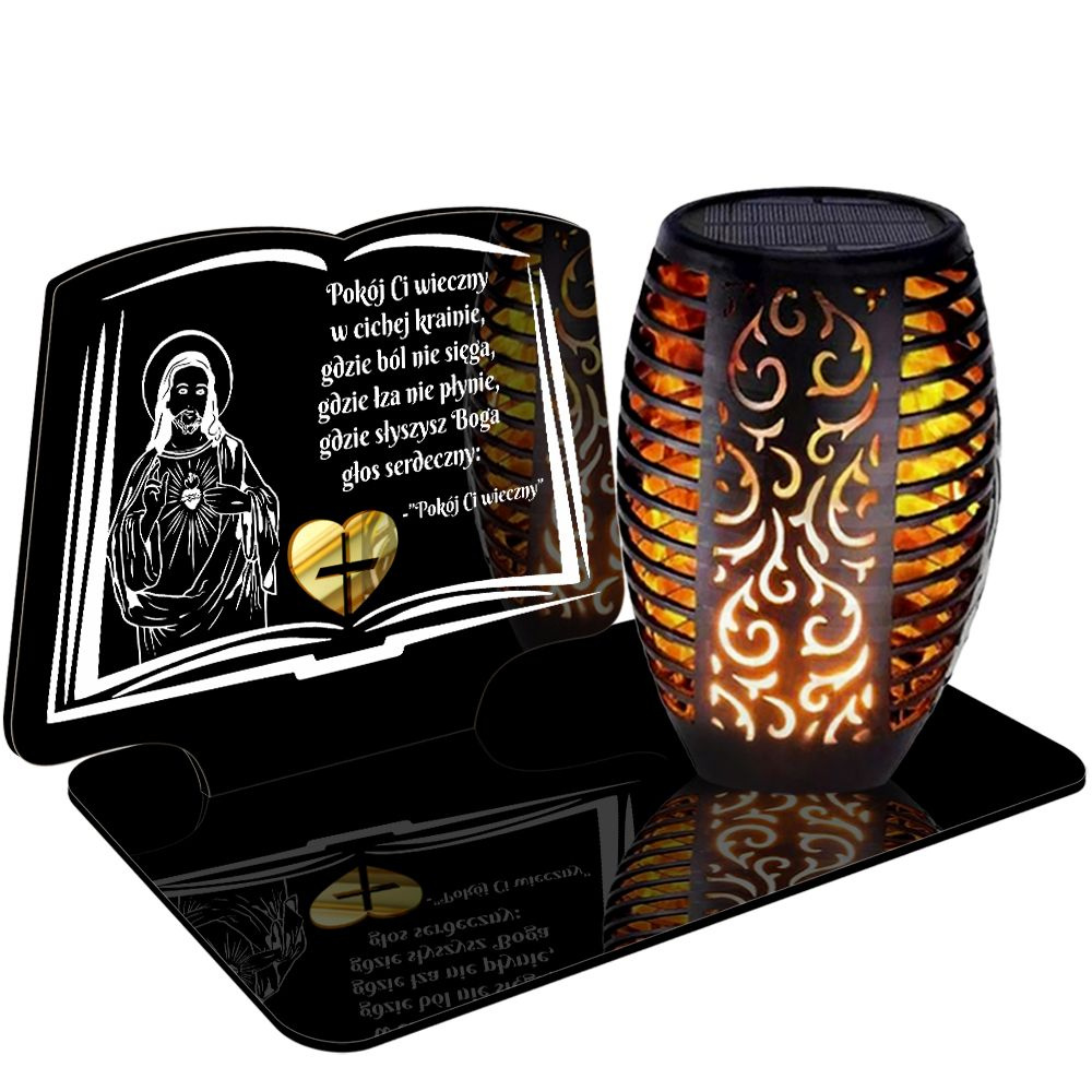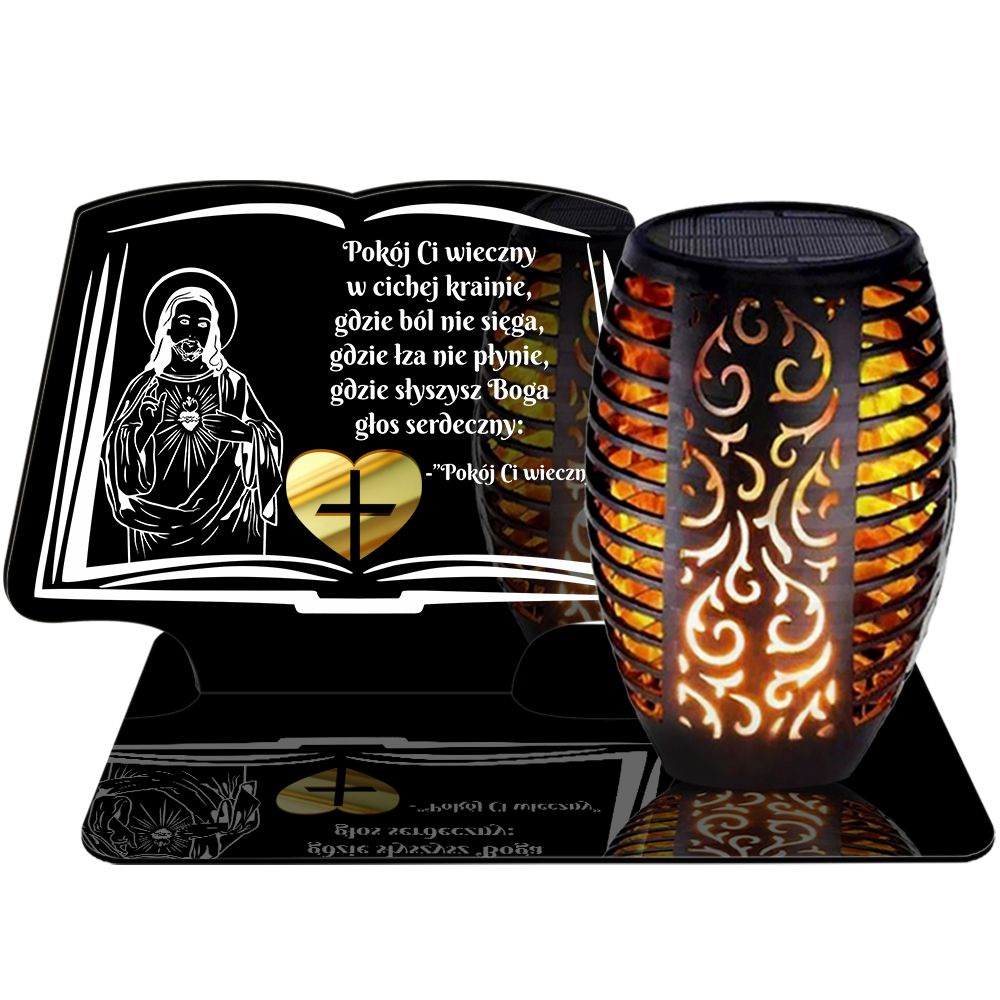ZNICZ SOLARNY LED WIECZNY PODSTAWKA NA CMENTARZ GRÓB Księga EFEKT PŁOMIENIA