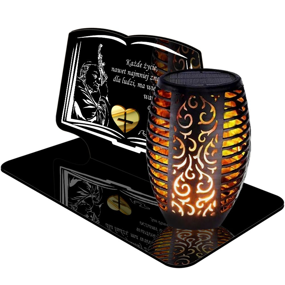 • ZNICZ SOLARNY LED WIECZNY PODSTAWKA NA CMENTARZ GRÓB Księga EFEKT PŁOMIENIA