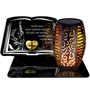 ZNICZ SOLARNY LED PREMIUM XL z złotym zdobieniem - wieczny znicz z wbudowanym czujnikiem zmierzchu i WKŁADEM Z EFEKTEM PŁOMIENIA