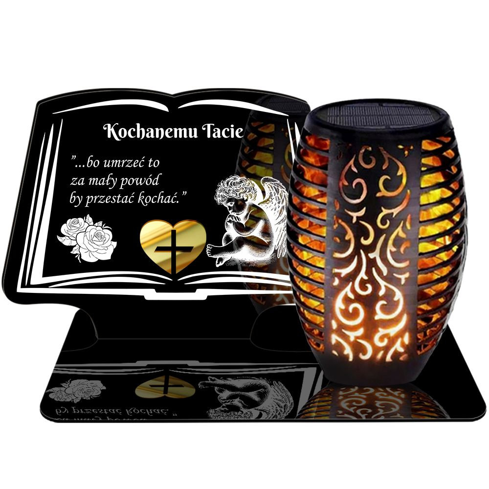 ZNICZ SOLARNY LED WIECZNY PODSTAWKA NA CMENTARZ GRÓB Księga EFEKT PŁOMIENIA DLA TATY