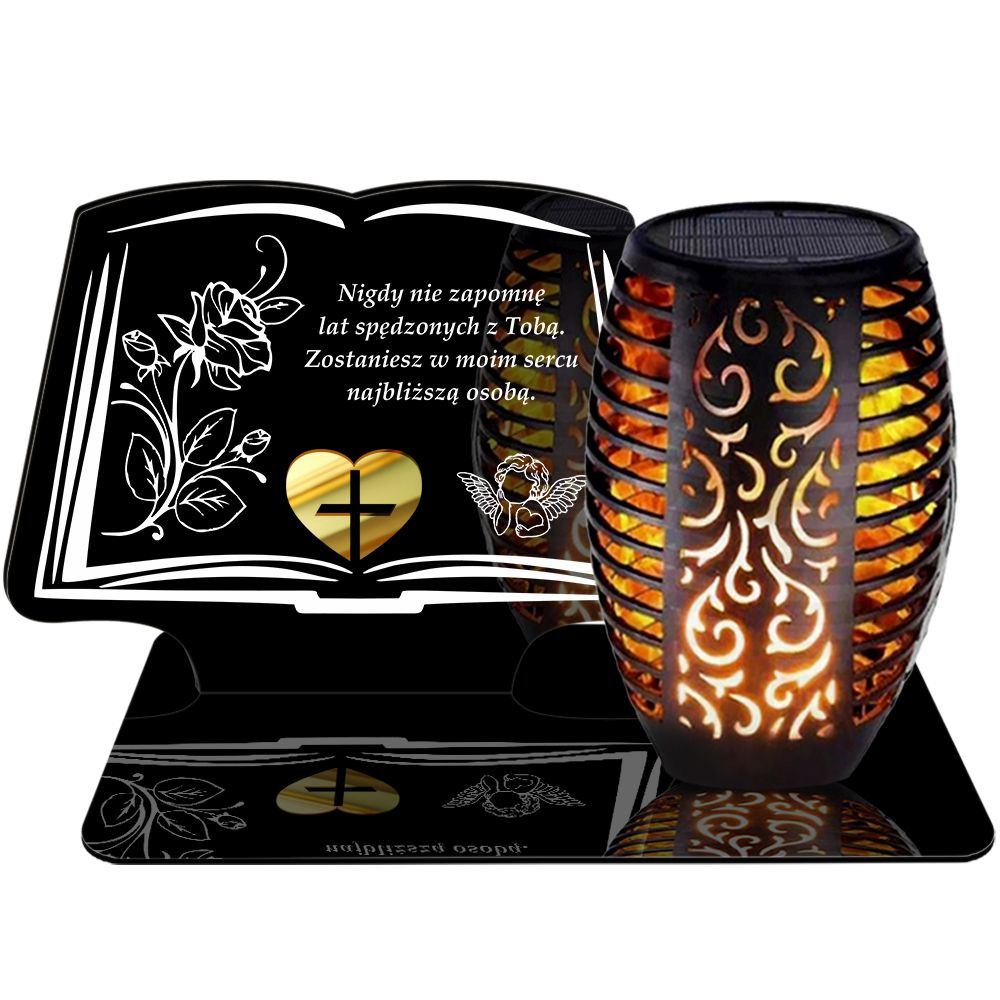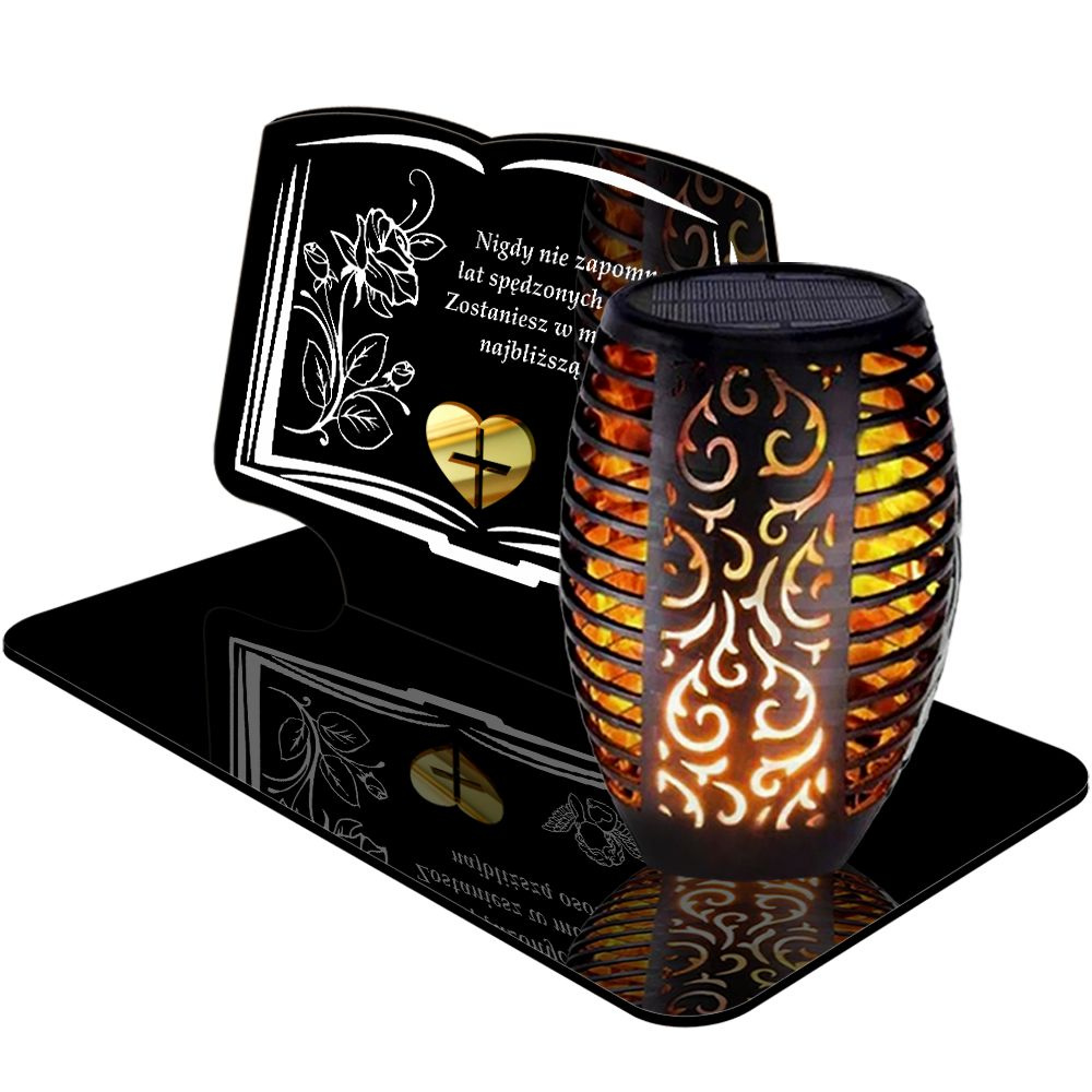 ZNICZ SOLARNY LED WIECZNY PODSTAWKA NA CMENTARZ GRÓB Księga EFEKT PŁOMIENIA
