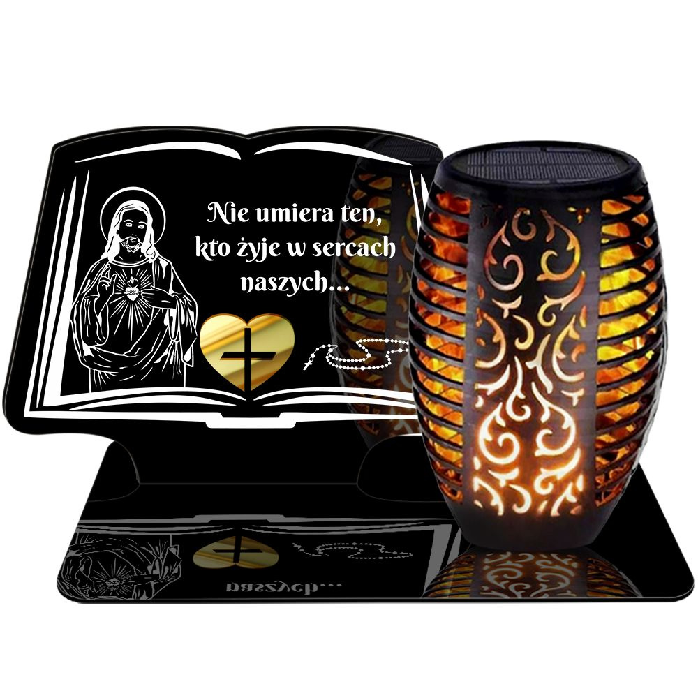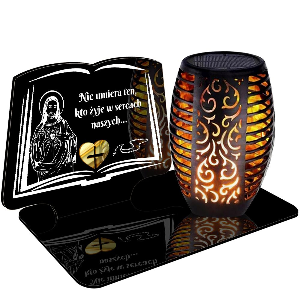 ZNICZ SOLARNY LED WIECZNY PODSTAWKA NA CMENTARZ GRÓB Księga EFEKT PŁOMIENIA