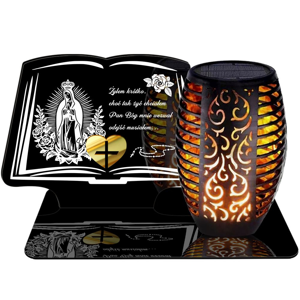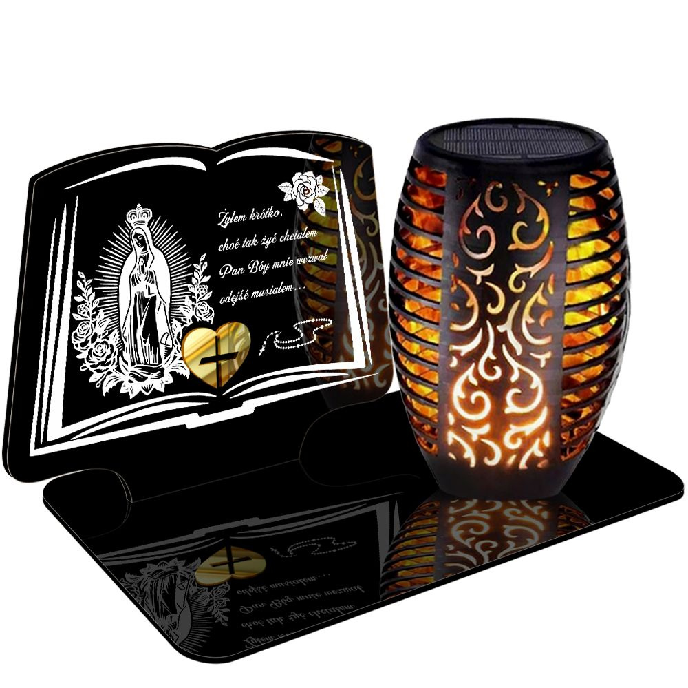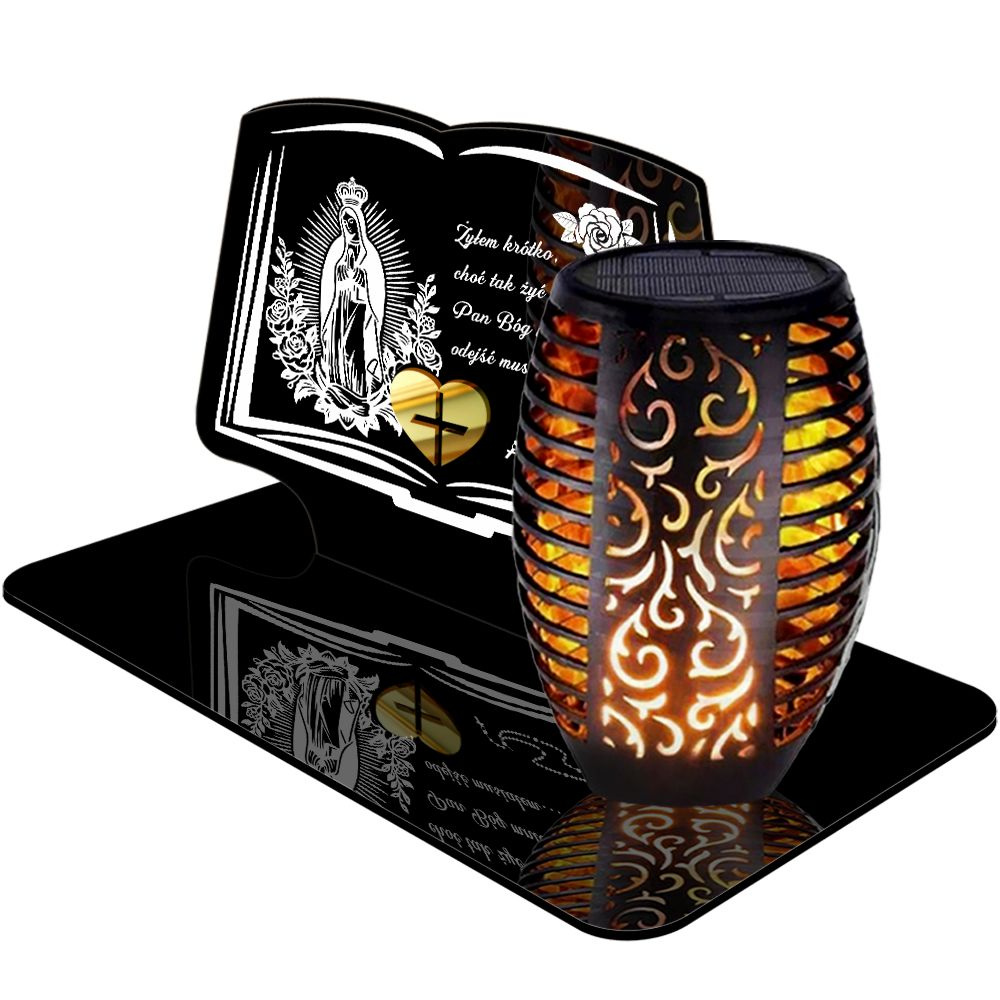 ZNICZ SOLARNY LED WIECZNY PODSTAWKA NA CMENTARZ GRÓB Księga EFEKT PŁOMIENIA