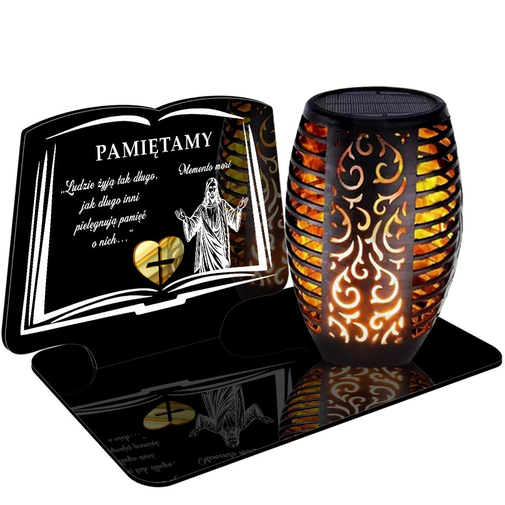• ZNICZ SOLARNY LED WIECZNY PODSTAWKA NA CMENTARZ GRÓB Księga EFEKT PŁOMIENIA