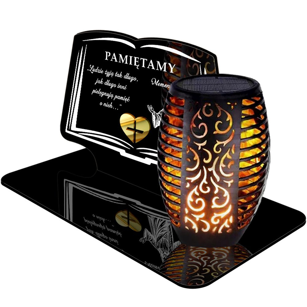 ZNICZ SOLARNY LED WIECZNY PODSTAWKA NA CMENTARZ GRÓB Księga EFEKT PŁOMIENIA