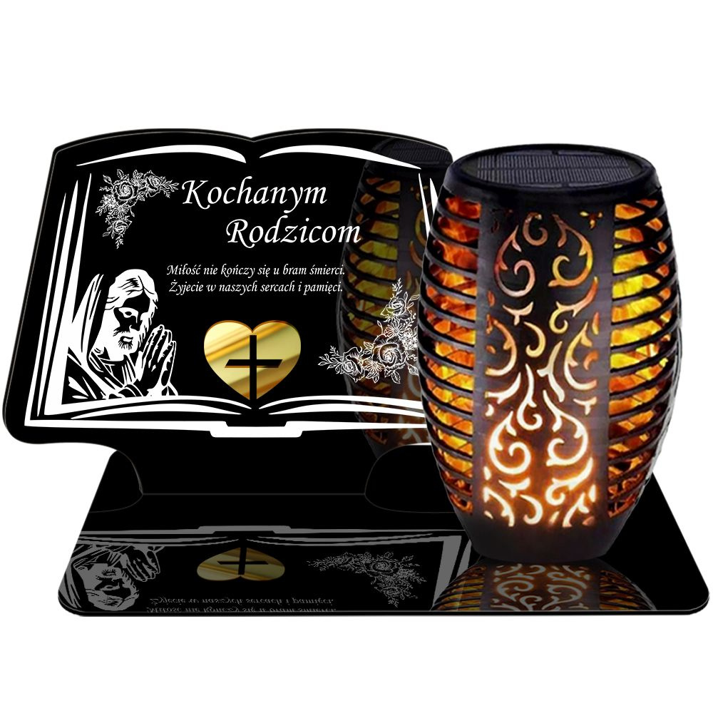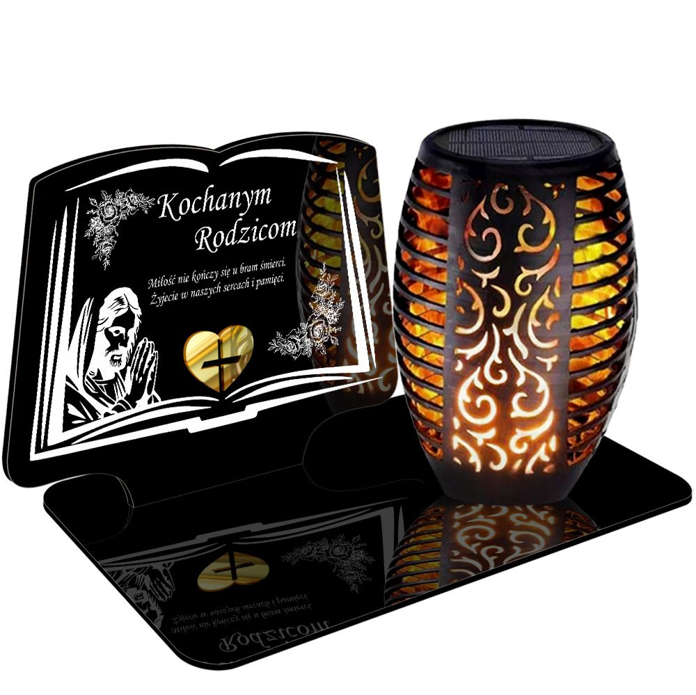 ZNICZ SOLARNY LED WIECZNY PODSTAWKA NA CMENTARZ GRÓB Księga EFEKT PŁOMIENIA DLA RODZICÓW