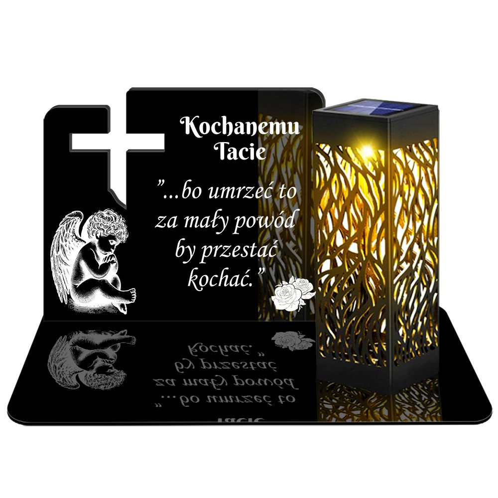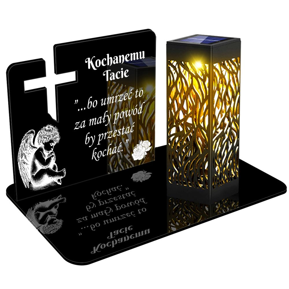 ZNICZ SOLARNY LED WIECZNY PODSTAWKA NA CMENTARZ GRÓB lampka Krzyż 3D DLA TATY