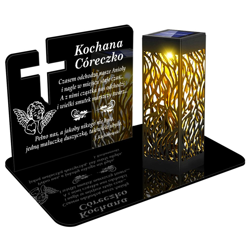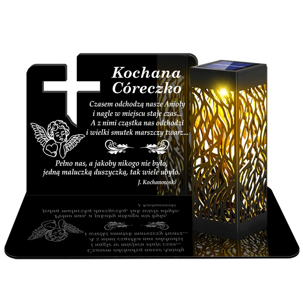 ZNICZ SOLARNY LED WIECZNY PODSTAWKA NA CMENTARZ GRÓB lampka Krzyż 3D DLA CÓRKI