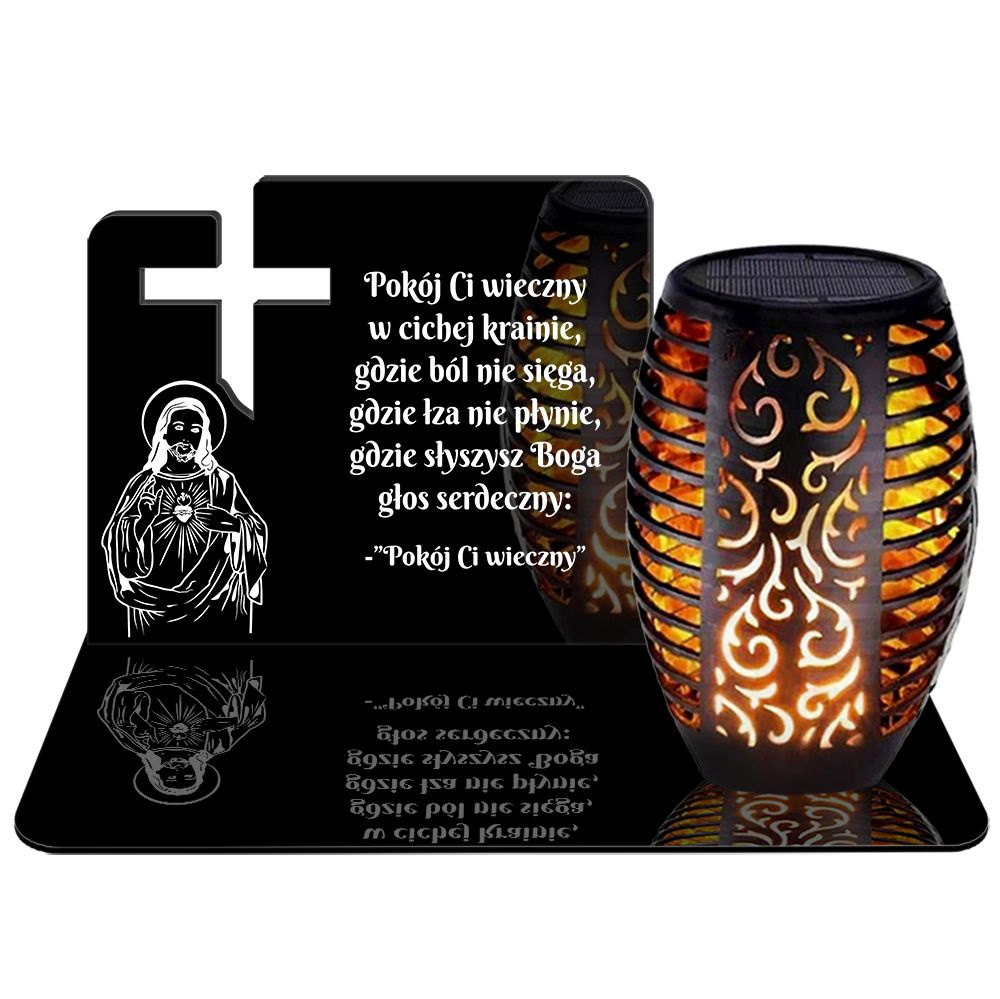 ZNICZ SOLARNY LED WIECZNY PODSTAWKA NA CMENTARZ GRÓB Krzyż EFEKT PŁOMIENIA