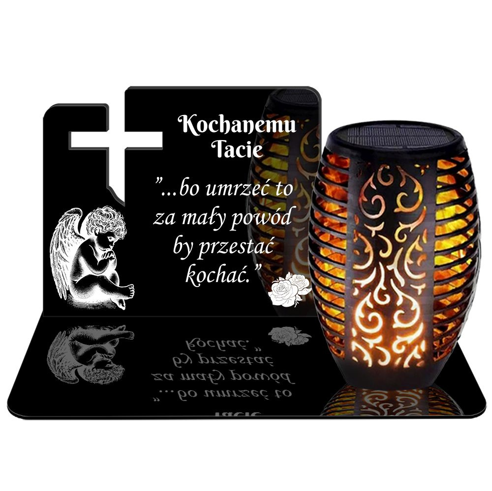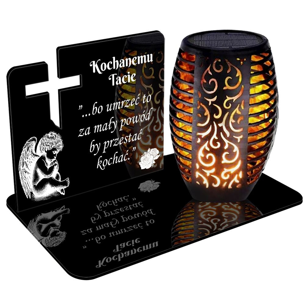 ZNICZ SOLARNY LED WIECZNY PODSTAWKA NA CMENTARZ GRÓB Krzyż EFEKT PŁOMIENIA DLA TATY