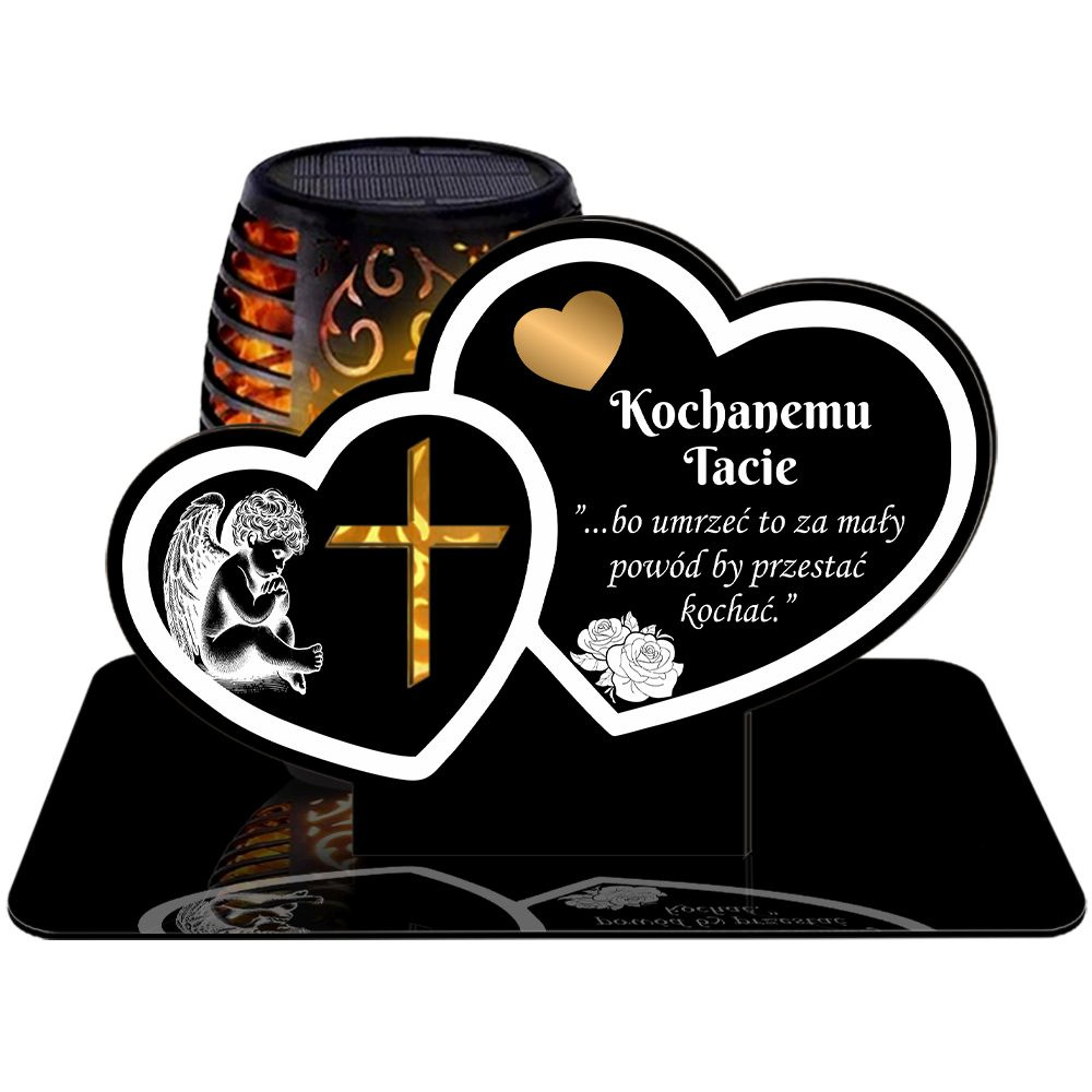 ZNICZ SOLARNY LED WIECZNY PODSTAWKA NA CMENTARZ GRÓB Serce EFEKT PŁOMIENIA DLA TATY