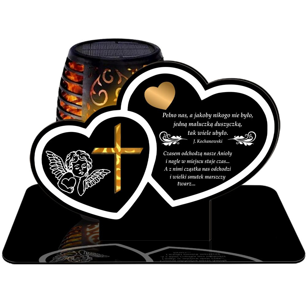 ZNICZ SOLARNY LED WIECZNY PODSTAWKA NA CMENTARZ GRÓB Serce EFEKT PŁOMIENIA