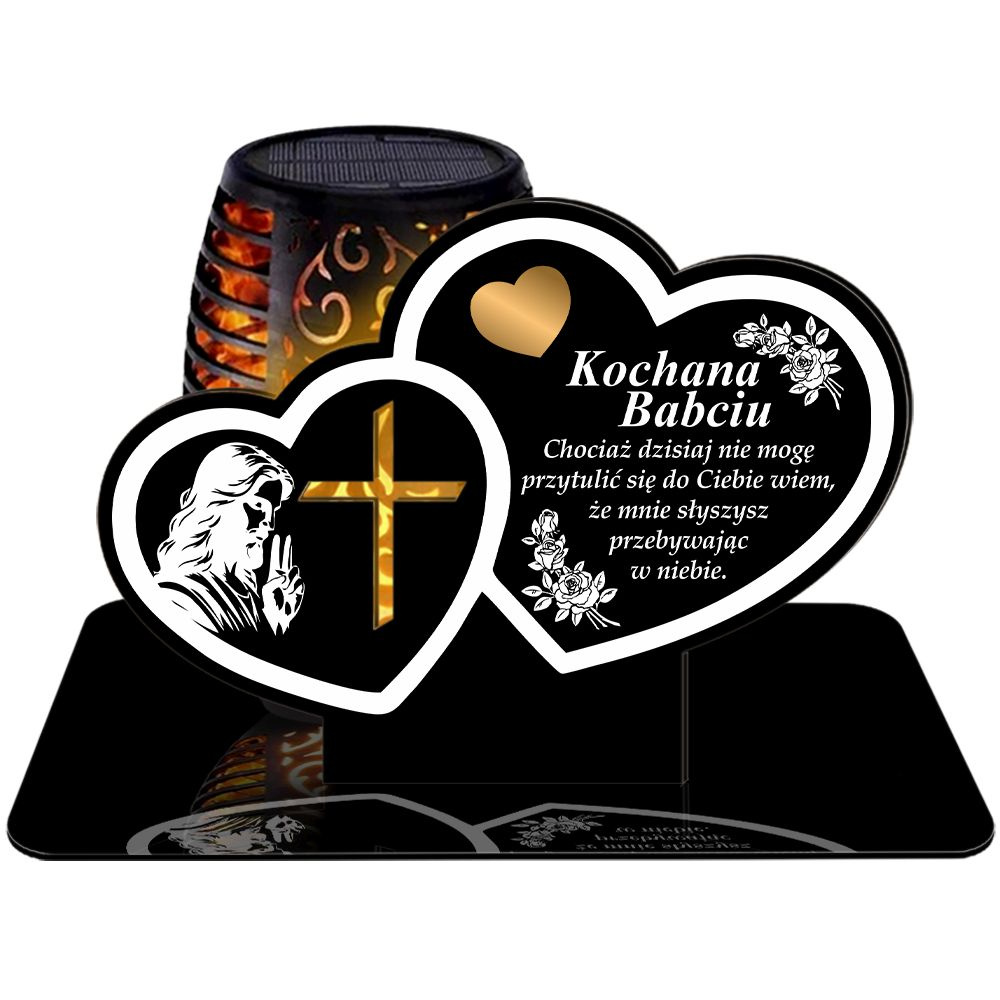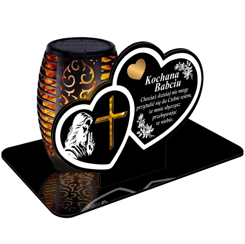 ZNICZ SOLARNY LED WIECZNY PODSTAWKA NA CMENTARZ GRÓB Serce EFEKT PŁOMIENIA DLA BABCI