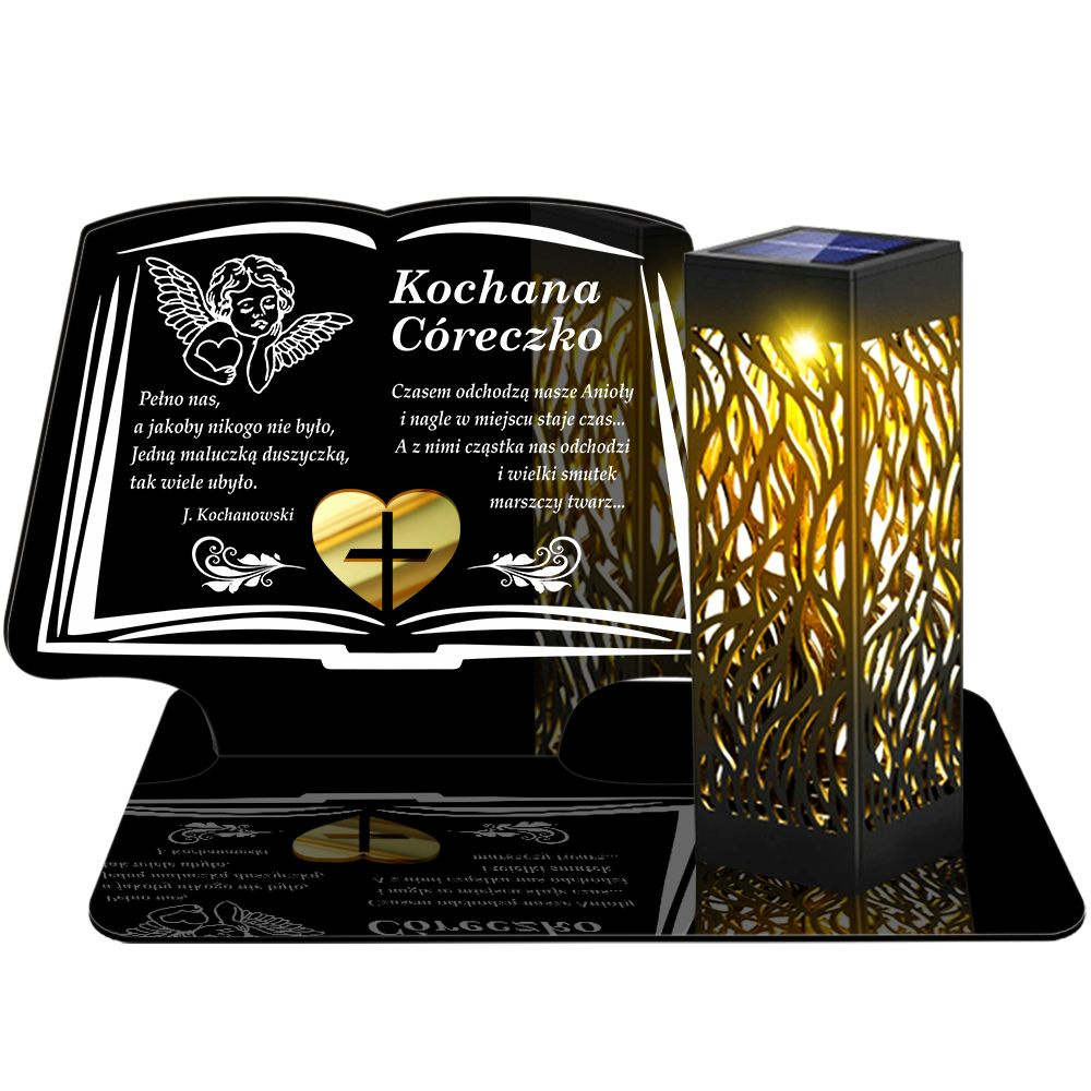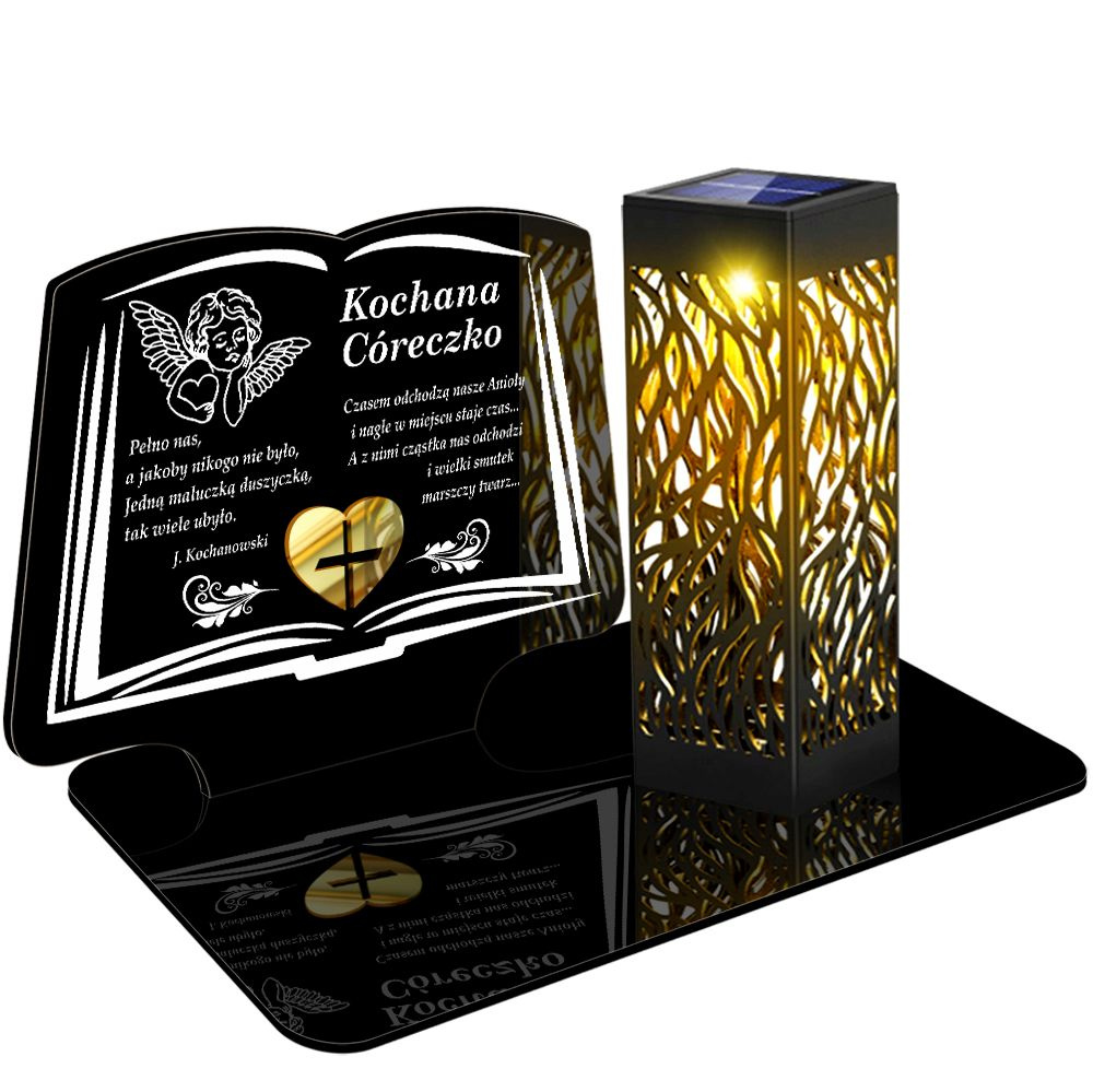 ZNICZ SOLARNY LED WIECZNY PODSTAWKA NA CMENTARZ GRÓB lampka Księga 3D DLA CÓRKI