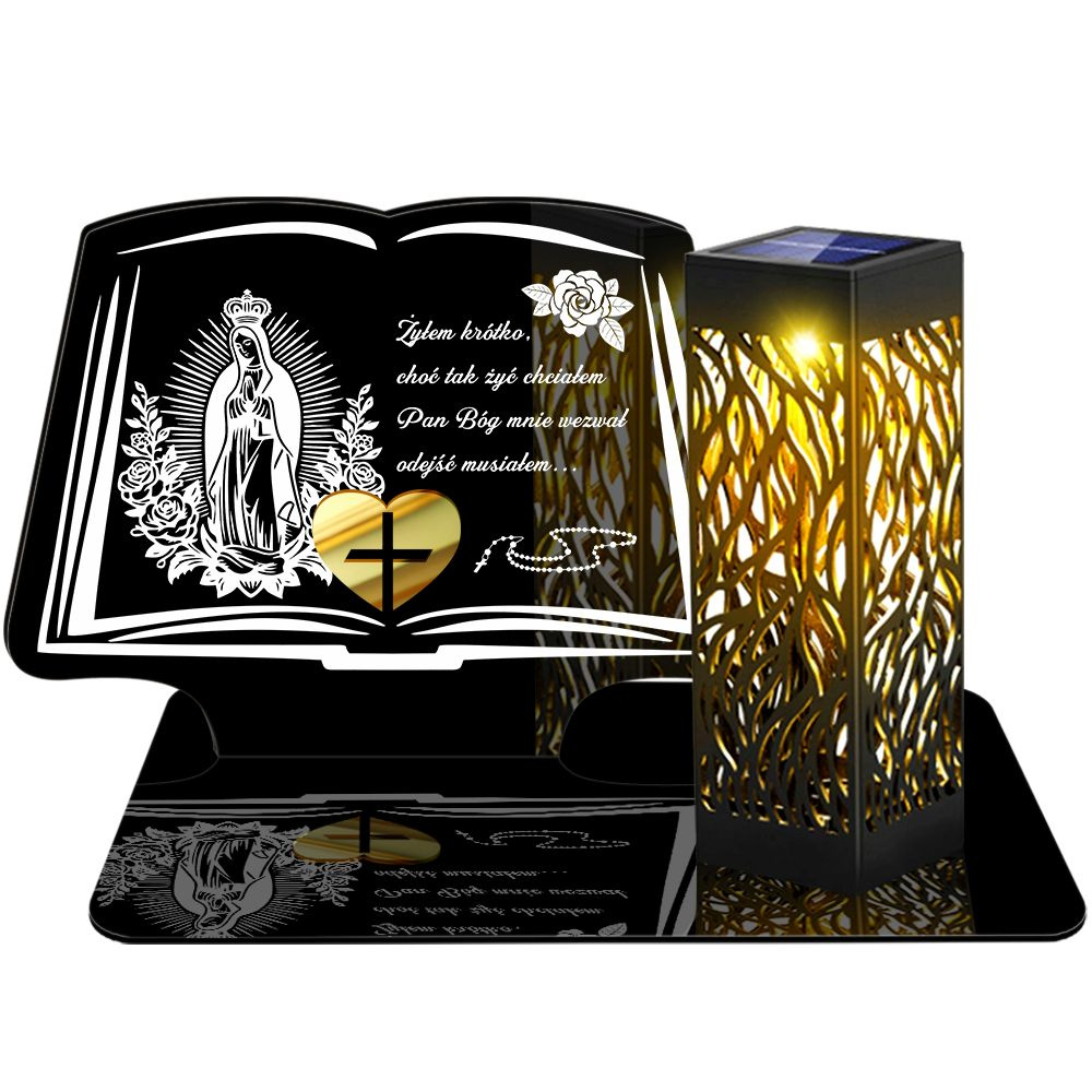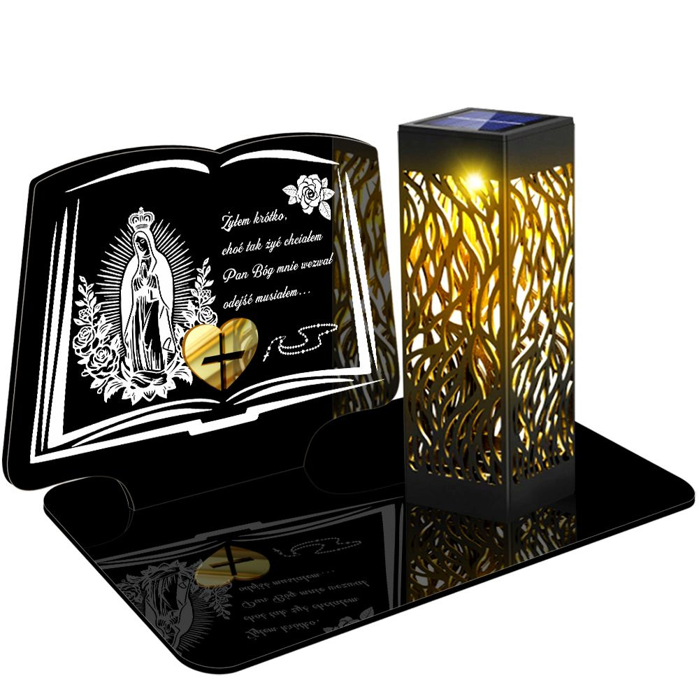 • ZNICZ SOLARNY LED WIECZNY PODSTAWKA NA CMENTARZ GRÓB lampka Księga 3D