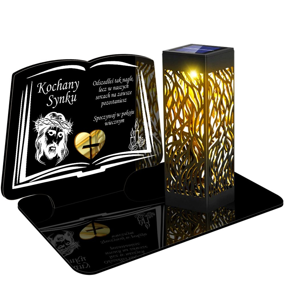 • ZNICZ SOLARNY LED WIECZNY PODSTAWKA NA CMENTARZ GRÓB lampka Księga 3D DLA SYNA