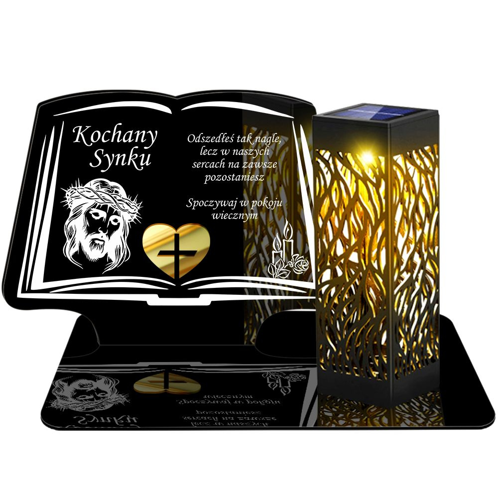 ZNICZ SOLARNY LED WIECZNY PODSTAWKA NA CMENTARZ GRÓB lampka Księga 3D DLA SYNA