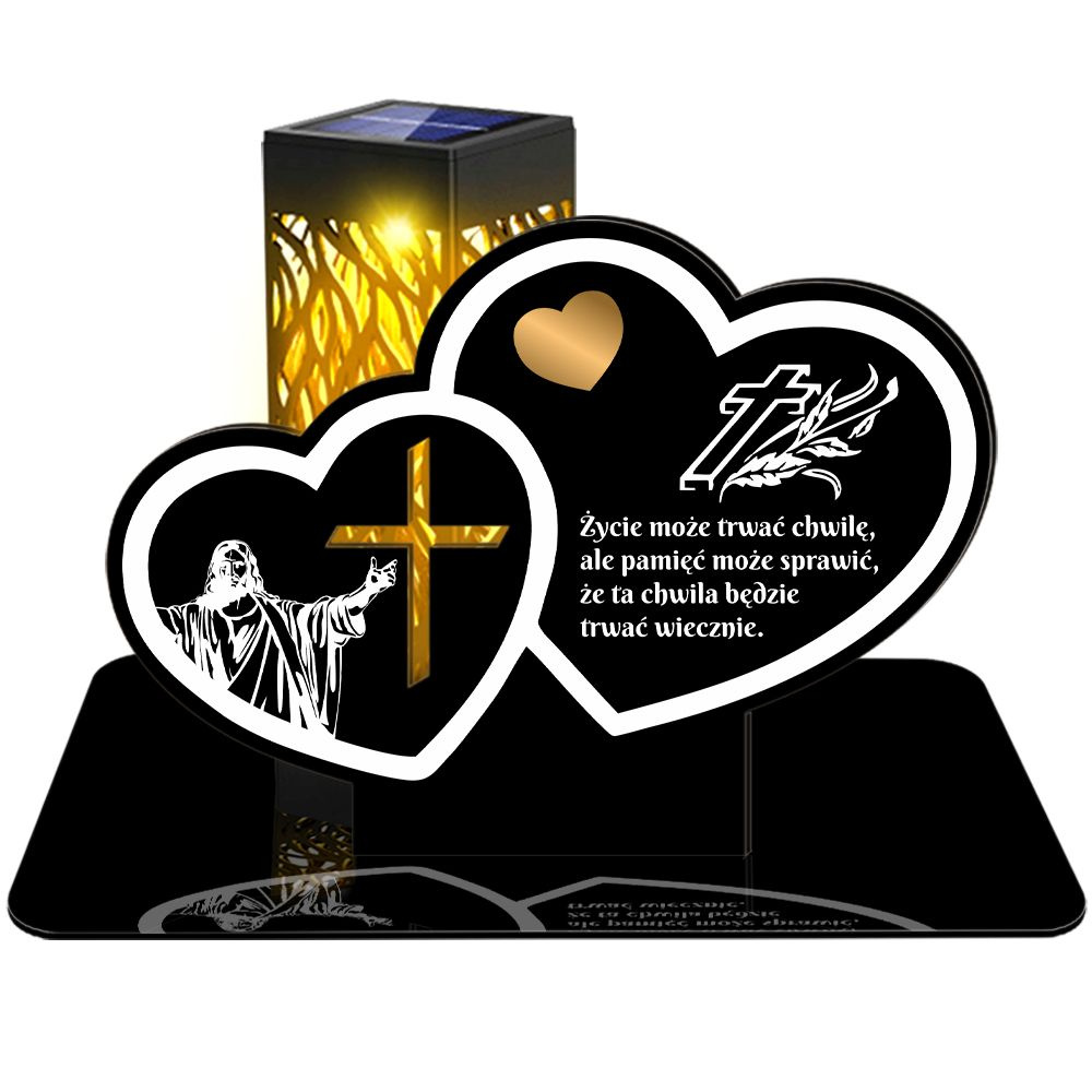 • ZNICZ SOLARNY LED WIECZNY PODSTAWKA NA CMENTARZ GRÓB lampka Serce 3D