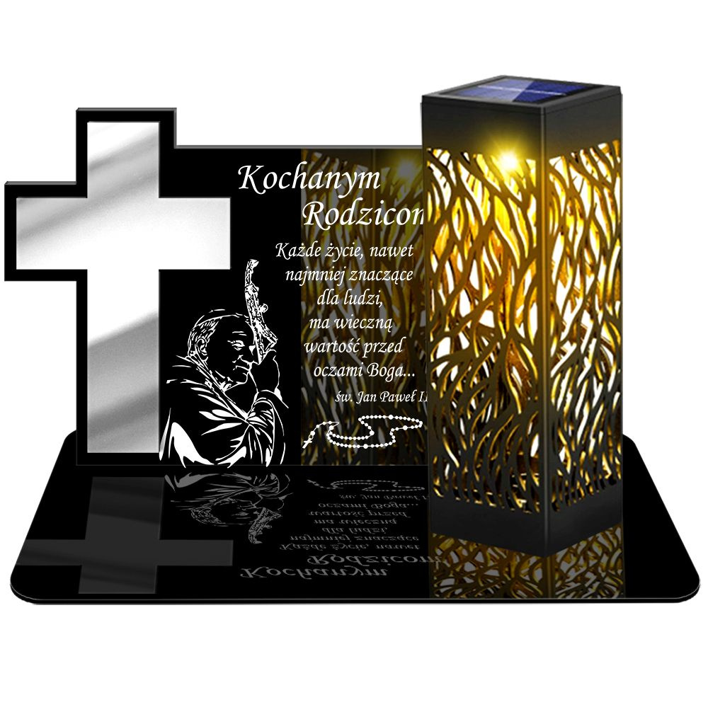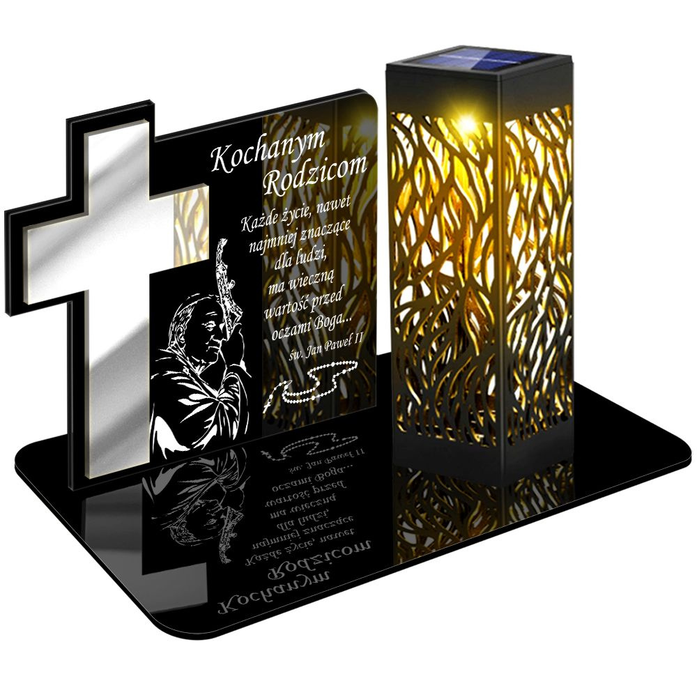 ZNICZ SOLARNY LED WIECZNY PODSTAWKA NA CMENTARZ GRÓB lampka Krzyż 3D DLA RODZICÓW