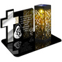 ZNICZ SOLARNY LED PREMIUM XL z srebrnym zdobieniem - wieczny znicz z wbudowanym czujnikiem zmierzchu
