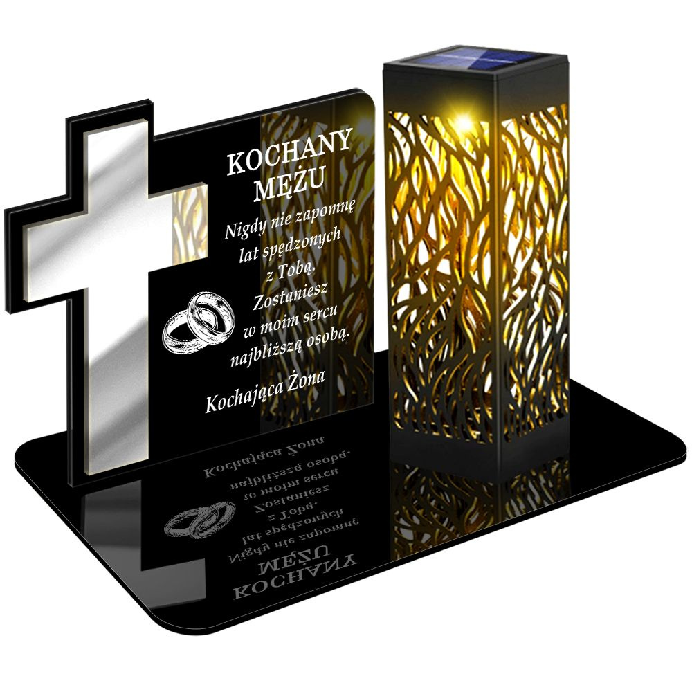 ZNICZ SOLARNY LED WIECZNY PODSTAWKA NA CMENTARZ GRÓB lampka Krzyż 3D DLA MĘŻA