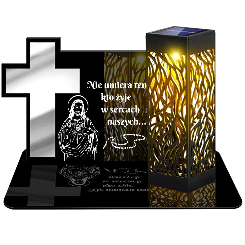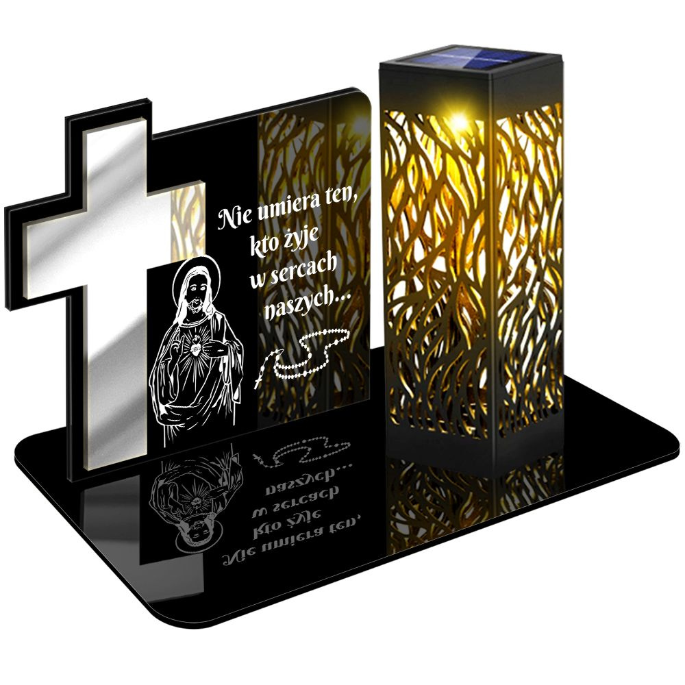ZNICZ SOLARNY LED PREMIUM XL z srebrnym zdobieniem - wieczny znicz z wbudowanym czujnikiem zmierzchu