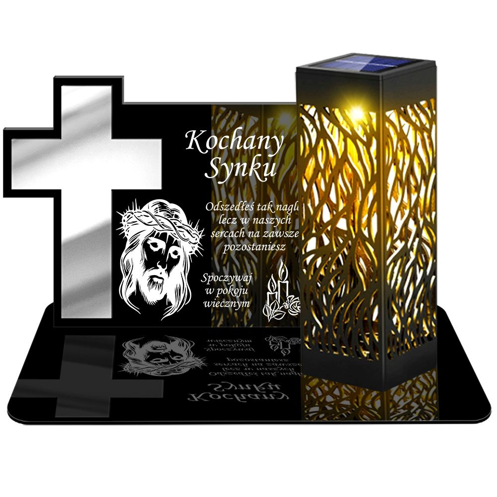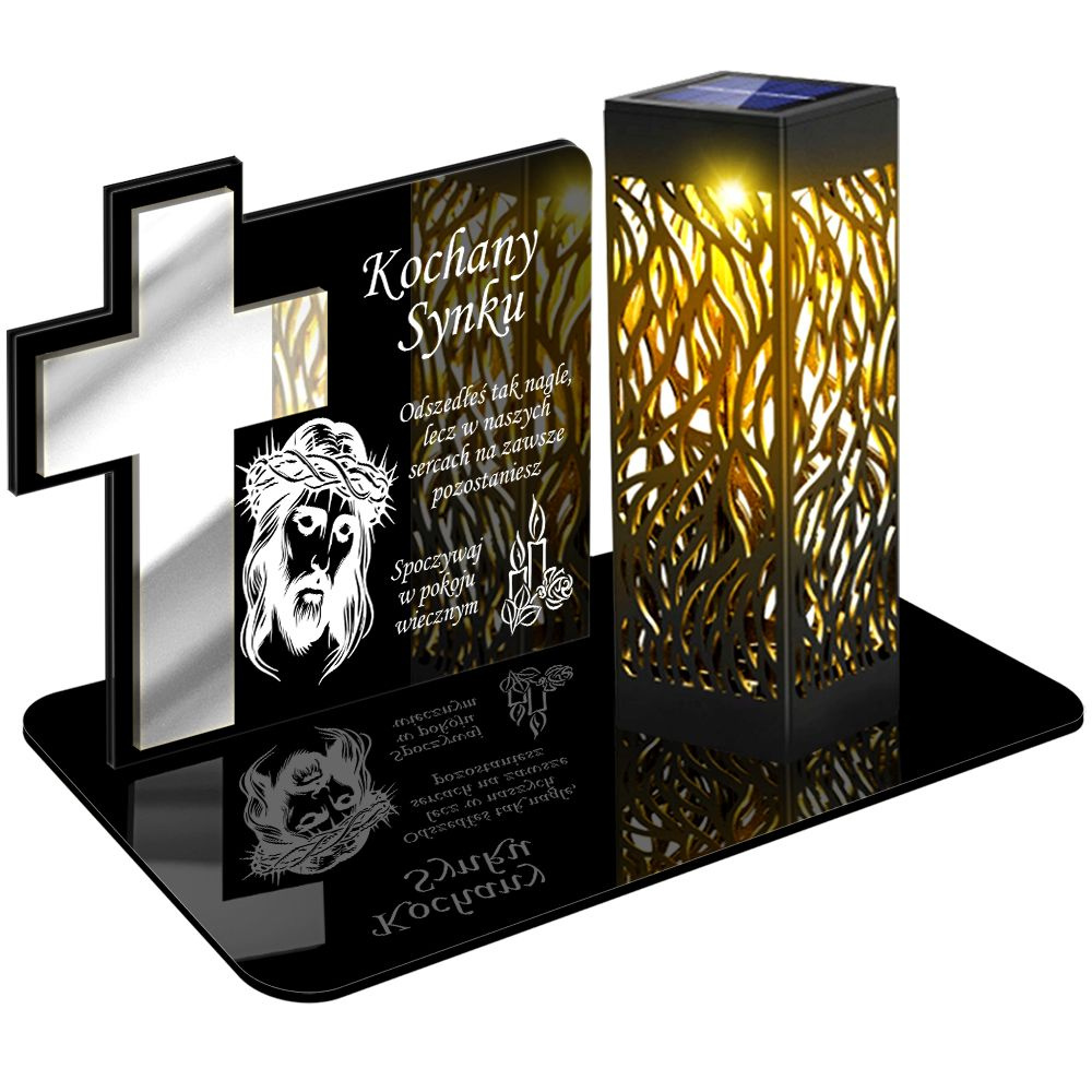 ZNICZ SOLARNY LED WIECZNY PODSTAWKA NA CMENTARZ GRÓB lampka Krzyż 3D DLA SYNA
