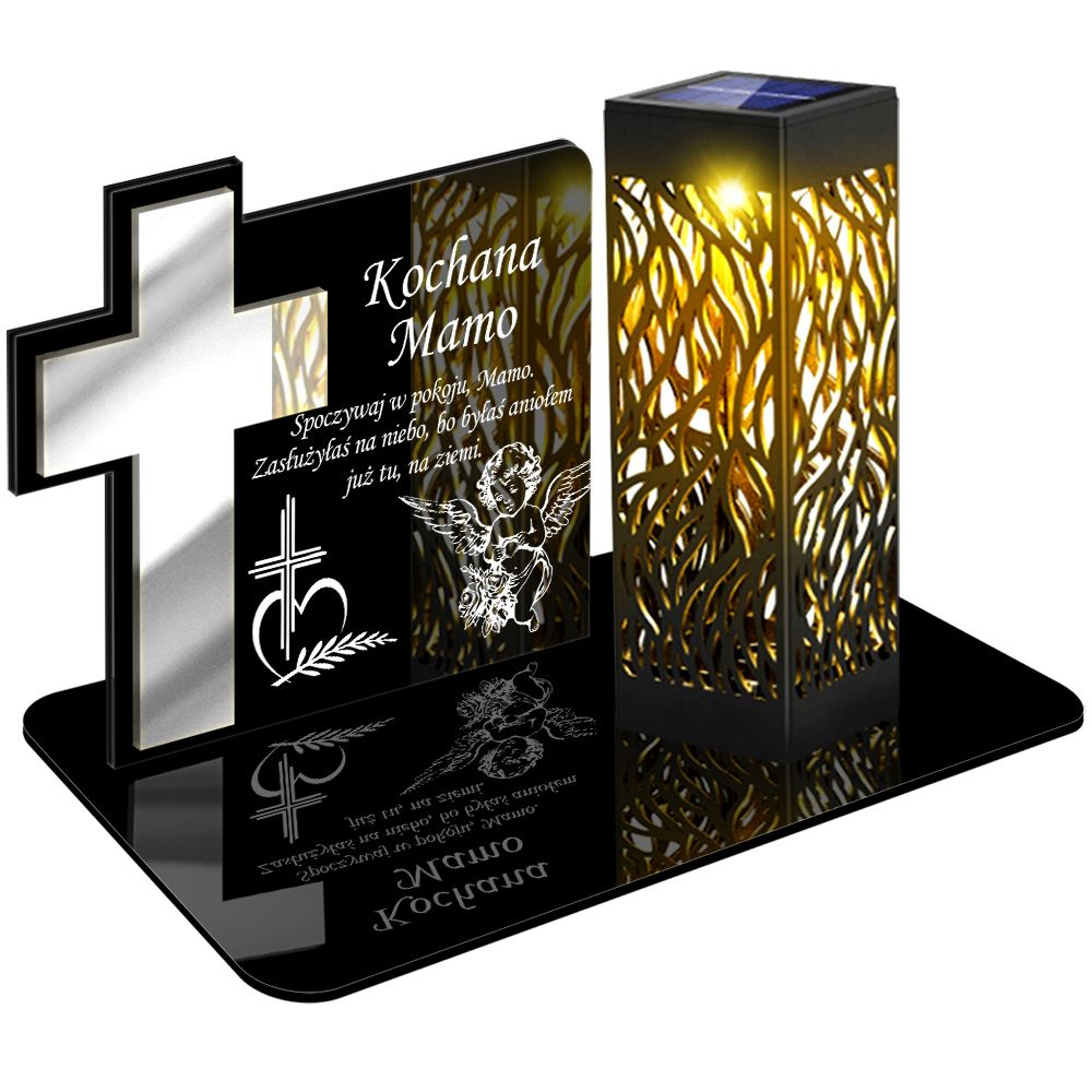 ZNICZ SOLARNY LED WIECZNY PODSTAWKA NA CMENTARZ GRÓB lampka Krzyż 3D DLA MAMY