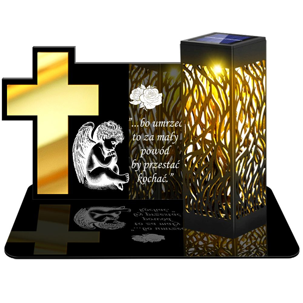 ZNICZ SOLARNY LED PREMIUM XL z złotym zdobieniem - wieczny znicz z wbudowanym czujnikiem zmierzchu