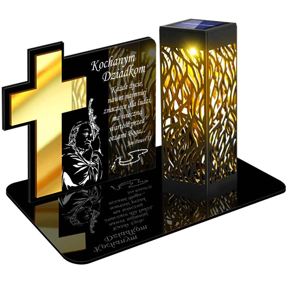 ZNICZ SOLARNY LED WIECZNY PODSTAWKA NA CMENTARZ GRÓB lampka Krzyż 3D DLA DZIADKÓW