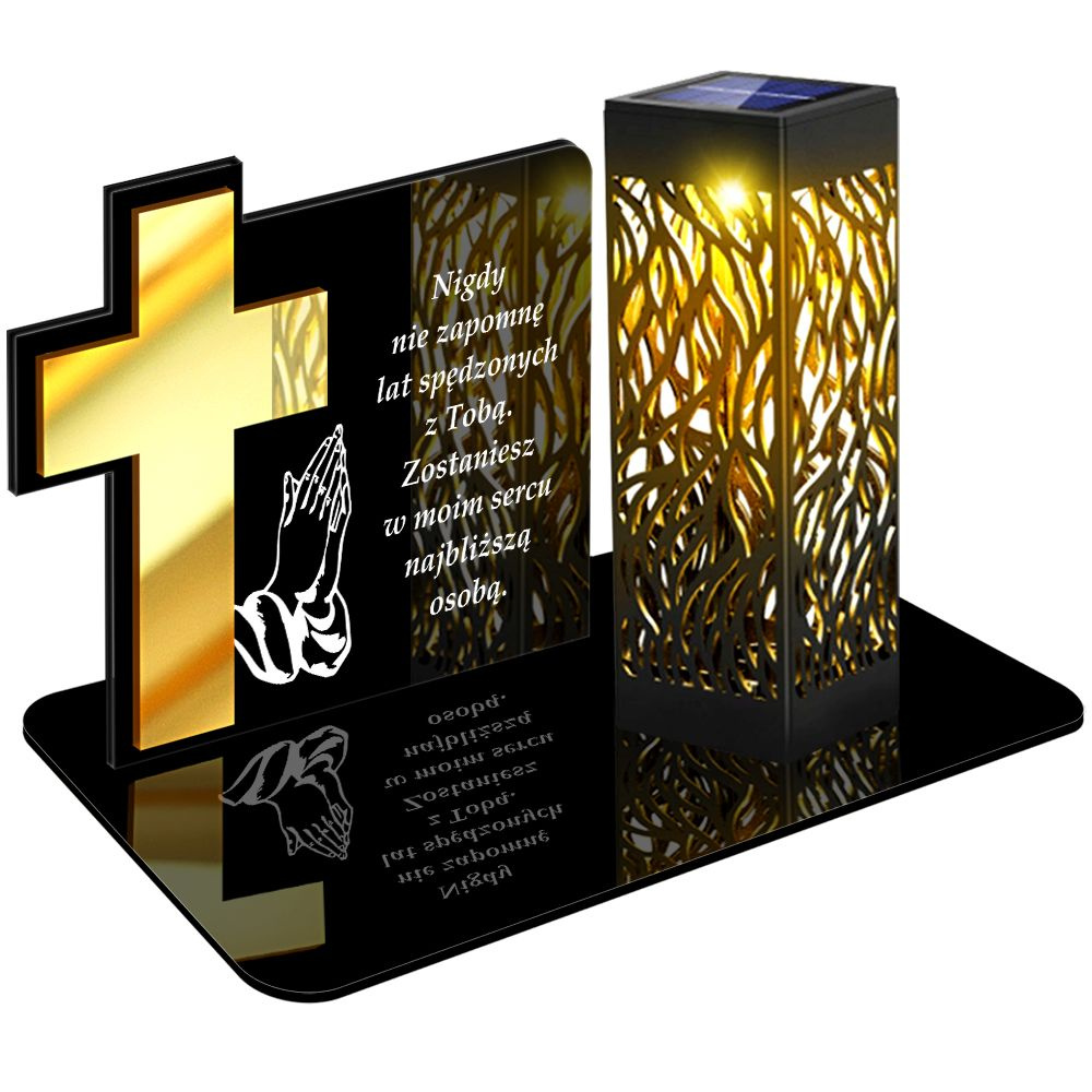 ZNICZ SOLARNY LED PREMIUM XL z złotym zdobieniem - wieczny znicz z wbudowanym czujnikiem zmierzchu